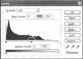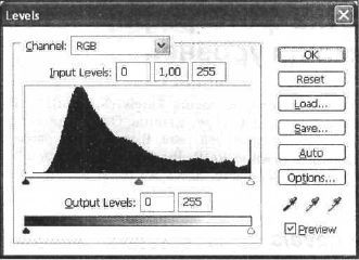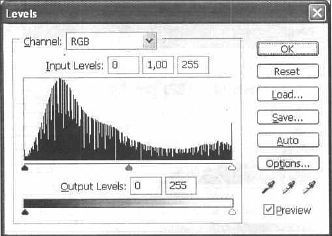 Рис. 33.3. Правила, приведенные ниже, лучше соблюдать. — Никогда не используйте средний ползунок RGB-режима для осветления или затемнения изображения. Он не предназначен для этого. Лучше использовать корректировку Image | Adjustments | Brightness/Contrast (Изображение | Настройка | Яркость/Контраст) (рис. 33.4). Все фотографии нуждаются в цветовой коррекции, пока вы не проверите уровень белого и черного цветов.