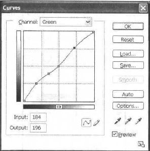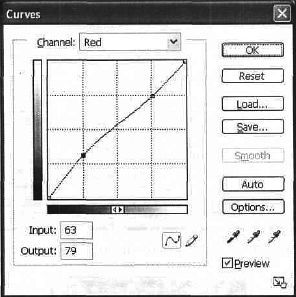 Рис. 33.14. Посмотрите на изображение. Как видите, цветов все равно не хватает. Воспользуйтесь функцией Curves (Кривые) для корректировки цветовых каналов. Кривые позволяют управлять балансом цвета на изображении более удобным способом. Curves (Кривые) — это уже дополнительная настройка, из уровней вы получили максимум, но с профессиональной точки зрения работа еще не закончена. Измените сначала Red (Красный), ориентируясь на цвет сатина, чтобы он был естественней (рис. 33.15), затем измените канал Blue (Синий) (рис. 33.16) и только потом настройте по цвету травы и общего фона канал Green (Зеленый) (рис. 33.17)