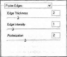 Рис. 35.14. Фильтр Poster Edges (Грани эмблемы) уменьшает число цветов на изображении и схематизирует их согласно установленным опциям. А также находит грани изображения и рисует черные строки на них. Большие широкие области изображения образа имеют простой оттенок, в то время как темные детали распределены по всему изображению (рис. 35.14. 35.15).