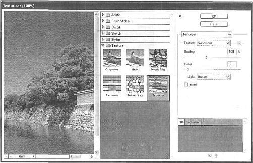 Рис. 35.17. Картины рисуют на холстах, примените аналогичный эффект к вашему изображению. Дтя этой цели наиболее подходит фильтр Texturizer (Текстуризатор). Выполните этот фильтр на самом первом слое (рис. 35.18).
