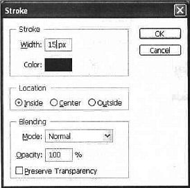 Рис. 35.19. Выполните команду Edit | Stroke (Редактирование | Обводка) (рис. 35.20, 35.21). Оптимальной толщиной линии будет 15.