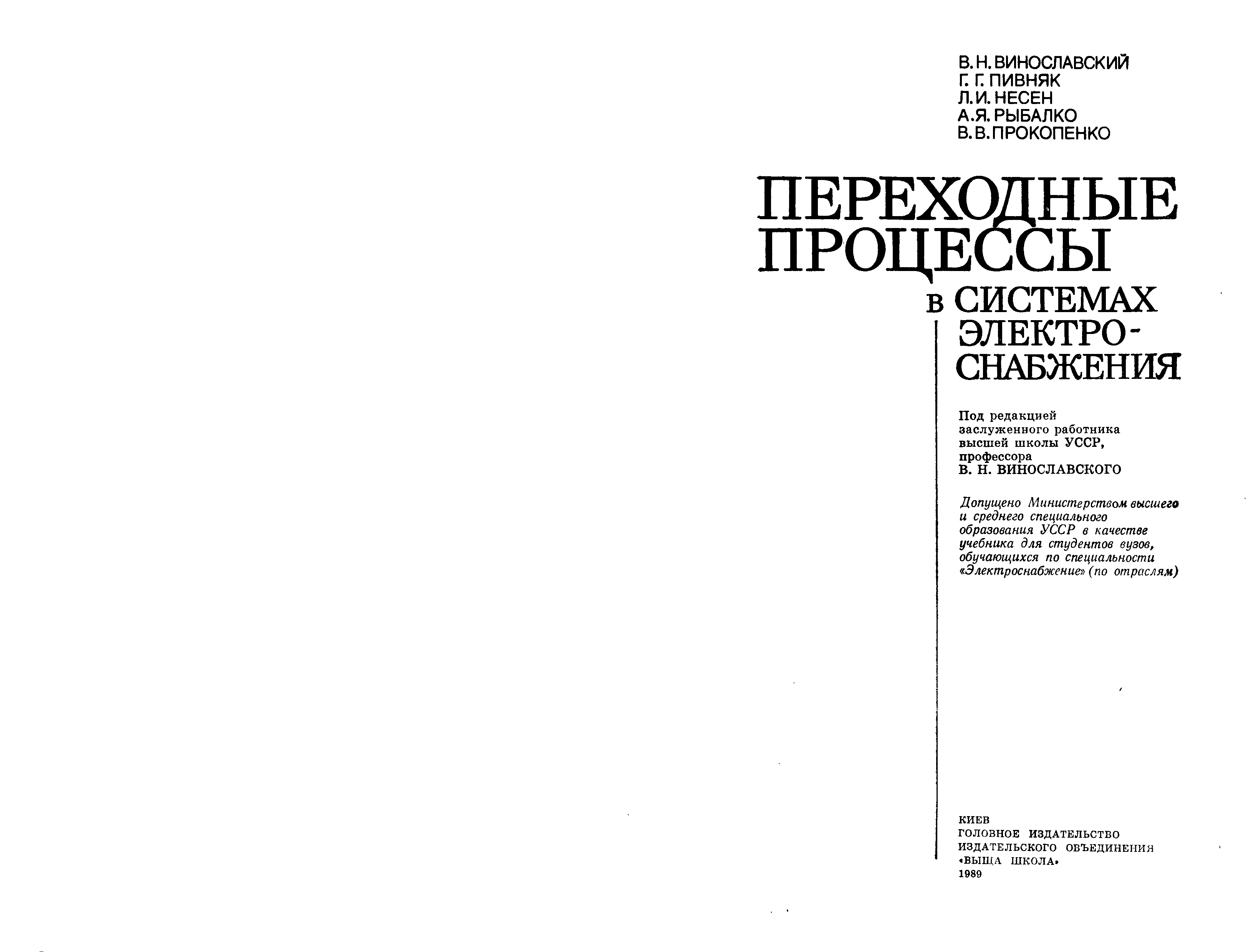 "В.Н.Винославский, Г.П.Пивняк. Переходные процессы в системах электроснабжения (djvu) " - читать интересную книгу автора