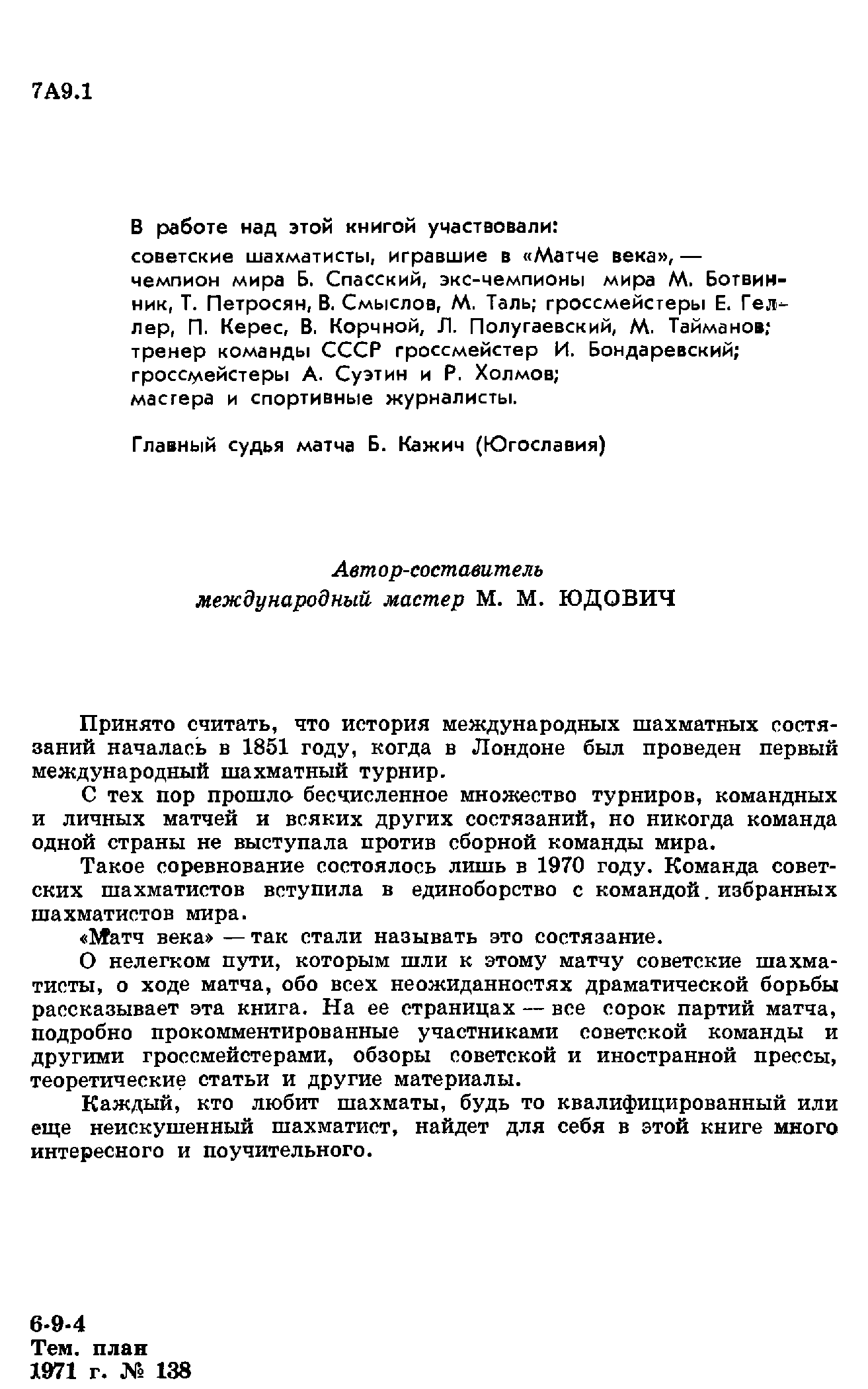 "М.М.Юдович. Матч века (Сборная СССР, djvu) " - читать интересную книгу автора