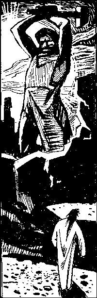 Заглянув вместе с Кайболом отсюда, с Луны, в здание военного штаба одного из государств Земли и в библиотеку, я уже не удивлялся тому, каким образом альвины могли заснять все происходящее на планете Рам. Ильмана рассказывала: - Планеты Альва и Рам через каждые двадцать четыре круга сближаются настолько, что между ними можно установить регулярное пассажирское сообщение. Однако никакой связи между ними не было. Альвины не любили вмешиваться в чужие дела, но они, конечно, знали, что происходит на соседней планете. Там шли непрерывные войны, и в конце концов создалось единое государство, управляемое гарамуналом. «Рам» - значит, «голова»; «Раму» - «главный». Жители Рама считают свою планету главной в системе Айро - нашего Солнца - и себя тоже главными. Из рамуинов выделяются гарамуины - знать, элита, главенствующая во всей жизни, но законы издает одно лицо - гарамунал, что в переводе означает «наиглавнейший». Сейчас вы увидите, что такое Рам. Я увидел черную планету, голую - без лесов, ровную - без гор, озер и рек. Черная и серая пыль носилась волнами. Никакого намека на строения. Мертво было на всем полушарии, обращенном к нам. - Неужели это сделали вы? - опросил я встревоженно. - Нет, - ответила Ильмана. - Это сделали гарамунал и его воины. - Как, почему? - Всех, кто был против него, не хотел подчиняться ему, - уничтожали, сжигали их жилища. Погибли деревья и травы, высохли водоемы. Мы не знаем, каким образом гарамунал это делал, возможно, в озлоблении он не думал о последствиях, но вот уже давно на большей части планеты ничего не растет - ведь погибли семена и корни растений. Уцелевшие жители перебрались в места, не тронутые огнем, но там они оказались лишними. Они называют себя обездоленными. Жители планеты и войско гарамунала давно испытывают недостаток в продовольствии. Гарамунал, чтобы сохранить свою власть, начал войну против Альвы - он знал, что наша планета богата, и обещал всем гарамуинам и воинам богатую жизнь. Планета на экране медленно поворачивалась, очертания ее ушли за пределы экрана, и я увидел наползающую светлую сторону ее. Обозначились города. Один из них, самый крупный, расположенный среди желтой равнины, приблизился, можно было разглядеть строения. Они были круглые, высокие и напоминали водонапорные башни; окна тоже круглые. Объектив нацелился на одно из окон громадной башни с куполообразной крышей и, приблизив его, позволил заглянуть во внутрь. Здесь проходил, видимо, суд. Гарамуины с торчащими во все стороны жесткими черными волосами, с красными лицами, в длинных сверкающих драгоценностями одеждах, скрывавших руки и ноги, сидели полукругом, а перед ними стоял голый по пояс рамуин. Длинные волосы его были заломлены назад, связаны вместе с голыми мускулистыми руками, закинутыми за спину и схваченными в кольцо.