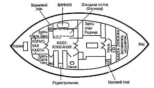 Места расположения умывальников он деликатно пометил «умыв.». — Наверное, вы с Кристофером пользовались тем умывальником, что у носового трапа, Уильям и Филипп — в середине яхты, а девушки — в своей каюте, — бормотал он. — Да, — подтвердил я, — кажется, так. — Жаль, что никто из вас не имеет привычки купаться ранним утром в холодной воде. Я сам этого никогда не делаю, хотя это прекрасная закалка… а в данном случае такая привычка могла бы предотвратить по крайней мере одно убийство, — произнёс он, разглядывая свой план. Вдруг он внимательно взглянул на меня и спросил: — Иен, а почему ты сказал «кажется, так»? Разве ты не знаешь наверняка? — Ты забываешь, что это было моё первое утро на яхте. Все остальные провели здесь уже целую неделю, у меня же просто не было времени ознакомиться с местными порядками. — Все это верно. По крайней мере твои молодые друзья сказали Берреллу, где именно они умывались, — согласился Финбоу и рассмеялся, — но, дорогой Иен, твои последние слова — это ещё одно убедительное доказательство того, что не ты убил Роджера. — Почему? — спросил я. — А потому, что убийца был прекрасно осведомлён об утреннем распорядке на яхте. Ты представь себе… представь, друг мой, какому риску подвергал он себя, если бы не знал привычек своих попутчиков! — воскликнул он. — Скоро ты придёшь к окончательному выводу, что я не убийца, — съязвил я. Он рассмеялся и закурил сигарету. Когда он снова заговорил, взгляд его блуждал где-то далеко-далеко: — Просто я хотел посмотреть, какие факты будут в моем распоряжении, когда мне придётся доказывать твою невиновность. Обычно очень много рассуждают о вещественных доказательствах в противоположность психологическим факторам, как будто первые исключают вторые. Это, разумеется, чепуха. Если бы у меня в руках был весь фактический материал, мне не нужны были бы никакие психологические соображения и мотивы. Например, если бы двадцать восемь надёжных свидетелей утверждали бы, что Роджер у них на глазах пустил себе пулю в лоб, то я бы этому поверил, хотя с психологической точки зрения трудно представить, чтобы такой человек, как Роджер, покончил жизнь самоубийством. Точно так же, как, если бы я знал, что кто-то… скажем Беррелл, предрасположен к убийству и жертвой его должен стать Роджер, я бы поверил в это, каким бы невероятным мне ни представлялся сам факт свершившегося преступления. Но дело в том, что следователь никогда не располагает ни всеми вещественными доказательствами, ни всеми психологическими факторами. Приходится довольствоваться неполной комбинацией того и другого. Я кивнул. — Да, — заметил с улыбкой Финбоу, — не забыть бы сказать об этом Алоизу Берреллу. У него имеется записная книжечка, куда он заносит все великие мысли по криминалистике. Во всяком случае, исходя из известных мне фактов, я могу сказать пока только одно: убить Роджера мог любой из пяти гостей на яхте. Но это и дураку понятно. Главное же сейчас — выявить кое-какие психологические аспекты преступления. — Например, — ввернул я, — зачем кому-то понадобилось убивать Роджера? — Ну, на этот вопрос, я думаю, проще всего ответить, — откликнулся Финбоу. — А какие ещё проблемы могут возникнуть? — настаивал я. — Что ты имеешь в виду? — Обещаю, что буду делиться с тобой всем, что знаю сам. Даже своими подозрениями, — заявил Финбоу. — Таинст