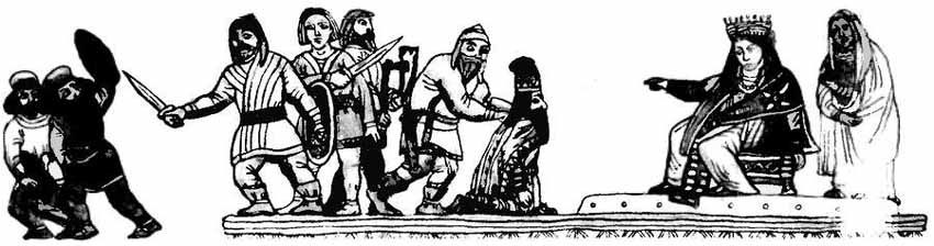 — Сиромахи мы бедные! Некому теперь нас от врага боронить! Услышала тот плач царица вдовая и так сказала: — Ежели плакать да горевать, то ещё горше будет. Неужто не осталось среди вас молодцев храбрых? Пусть придут ко мне самые лепшие! Сошлись добры молодцы — один другого краше — сошлись и стали спориться, кто сильней и ловчее, кто из них воеводой будет, а остальные чтоб слушались. А царица сказала им: — Почто споритесь? Я буду вашей начальницей. А кто мне не подчинится, тому голову сниму напрочь! Примчались тут гонцы издалека и принесли недобрую весть, что царь Вайлов Киряка идёт на Русь с войском многим и перебил уже стражу полуденную. Позвала царица Сиромахова сына своего Богураза, велела отправляться на полудень и выведать у врага его коварные замыслы. Пошёл царевич Богураз искать Вайлов. А те, хитрые, с пути ушли, в горах спрятались, а на дороге обозы оставили. А в тех обозах кувшины глиняные, а в кувшинах вино старое, крепкое. Налетел царевич Богураз с войском своим на обозы, добро забрали, вино выпили. А потом попадали в будяки да заснули на солнышке. Тут их, пьяных, Вайлы и порубили, а Богураза в полон взяли. Пришёл в себя Богураз-царевич, затужил и горько закручинился, что так оплошал и позволил взять себя пьяного. А царица Сиромаха уже о том прознала, поставила над войском младшего сына Винамира и на выручку поспешила. Два дня шла, да опоздала — убили Вайлы царевича. Поплакала Мать-Сиромахова, а потом на Киряку-царя напала, войско его разбила, а самого царя в полон захватила. Привели Киряку к царице, а та и говорит ему: — Ты почто сына моего Богураза сгубил? Почто пришёл пить кровушку русскую? А захотел крови, так будет тебе! И велела царица отрубить пленным Вайлам головы, а кровью их напоить Киряку-царя досыта. А когда напоили его так, что он пьяный стал, сняли и с него голову, чтоб другим впредь неповадно было на Русь зариться. И долго царица Мать-Сиромахова Дедами нашими правила и суды праведные рядила. И не раз ещё Деды с Вайлами бились, что войною на Русь шли, да не удалось им ни Дедов побить, ни Русь нашу закабалить. |