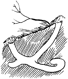 Зимою подушечки лап опушены густой шерстью. Отпечатки лап идущей шагом или рысью лисицы аккуратны, задняя лапа ставится в след передней. При глубоком снеге направление хода легко определить по выволокам. Лисица — главная героиня детских сказок наряду с волком и медведем. В отличие от последних, сказочные лисы наделены более или менее реальными чертами, что в некотором смысле облегчает рассказ о них. Непременные качества сказочной лисицы — пышный, длинный хвост, рыжая шуба и хитроватая узконосая мордочка. К этой популярной характеристике нужно добавить, что она стройна, красива, имеет удлиненное гибкое туловище на довольно низких ногах, а размерами с небольшую собаку. Самцы весят 6–10 килограммов, самки — на 1–2 килограмма меньше. Длина тела (без хвоста) — 60–90 сантиметров; высота в плечах — 35–50 сантиметров; 40–60 сантиметров приходится на знаменитый лисий хвост. У лисиц широко распространены цветовые отклонения в окраске меха. Сиводушки, крестовки и чернобурки — это обыкновенные лисицы с разной степенью отклонения от нормальной окраски. Наиболее красив черно-бурый мех с примесью чисто-белых остевых волос, придающих ему приятную серебристость. Таких лис уже давно разводят на зверофермах, в диком состоянии они встречаются очень редко. Летний мех лисицы редкий и короткий, летом она выглядит поджарой, большеголовой и даже длинноногой. В движениях лисицы бросается в глаза быстрота и ловкость. Несмотря на свои коротковатые ножки, она бегает так резво, что не всякая собака способна ее догнать. Что касается ловкости, то лисица успешно ловит пролетающих над ней жуков. Обычная манера ее передвижения — неторопливая рысца, нередко она переходит на шаг, делает остановки, осматриваясь вокруг, а при скрадывании добычи совершенно сливается с местностью и тихо ползет на брюхе. От преследования уходит большими прыжками. Лисица умеет залезть на дерево, если оно немного наклонное или ветвится невысоко над землей. Однажды мне привелось наблюдать такой случай. В лесистом овражистом распадке собака подняла и с лаем погнала какого-то зверя, которого вскоре же остановила. Каково же было мое удивление, когда, подбежав к лайке, я увидел высоко на дереве, метрах в десяти от земли… лису! Я выстрелил, но неудачно. Кумушка винтом съехала по стволу, спрыгнула на снег и бросилась бежать. Собака за ней. Видя, что дело плохо, лиса круто повернула назад, едва разминувшись с собакой, и на моих глазах быстро-быстро залезла на ту же липу. Вторым выстрелом я ее сбил. Это оказалась молодая самка. След лисицы очень похож на след средних размеров собаки. Зимою подушечки ее лап опушены густой шерстью. Следы лисица ставит аккуратно, как по нитке, заднюю лапу в след передней. Направление ее хода при мелком снеге легко определить по отпечатку следа, а при глубоком — по выволокам. Лисица очень активна. Она до подробностей знает свой охотничий участок и систематически его обследует. Зимой узорчатые цепочки ее следов причудливо пересекают поля, перелески, овраги, теряясь на дорогах и тропах и переплетаясь вокруг скирд соломы, копен сухих соевых стеблей, куч валежника и других мест, где обычны мыши и полевки. На следу охотящейся лисицы попадаются то разгребенный ворох сена, то ямка в снегу с капельками крови вокруг, то задавленная и брошенная землеройка, а то и перья зазевавше