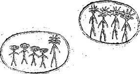 Ani recognized a group of Tendu and a group of new animals. Then the creature drew itself standing with the Tendu. It pointed to the drawing and then to itself, several times. “Yes,” Ani said, “I understand.” She copied the picture on her own chest, superimposing a realistic image of the new creature over the stick figure inside the oval. Ani then displayed the vertical pattern of black bars of agreement on her chest. She made them very large and simple, as though she were talking to someone far away. The animal nodded in response. It drew a line from the group of Tendu with the new creature to the other new animals.