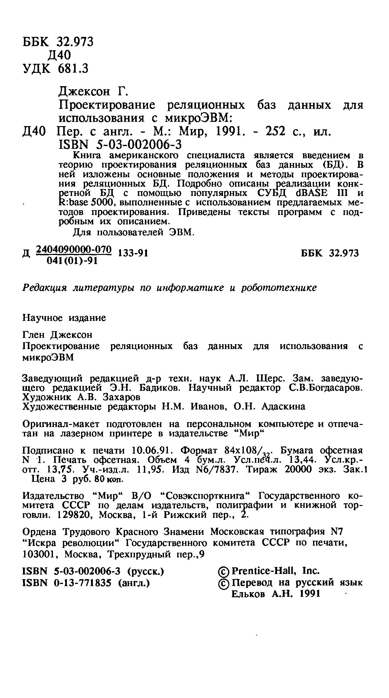 "Проектирование реляционных баз данных с использованием ЭВМ" - читать интересную книгу автора (Джексон Г. (Jackson J.))