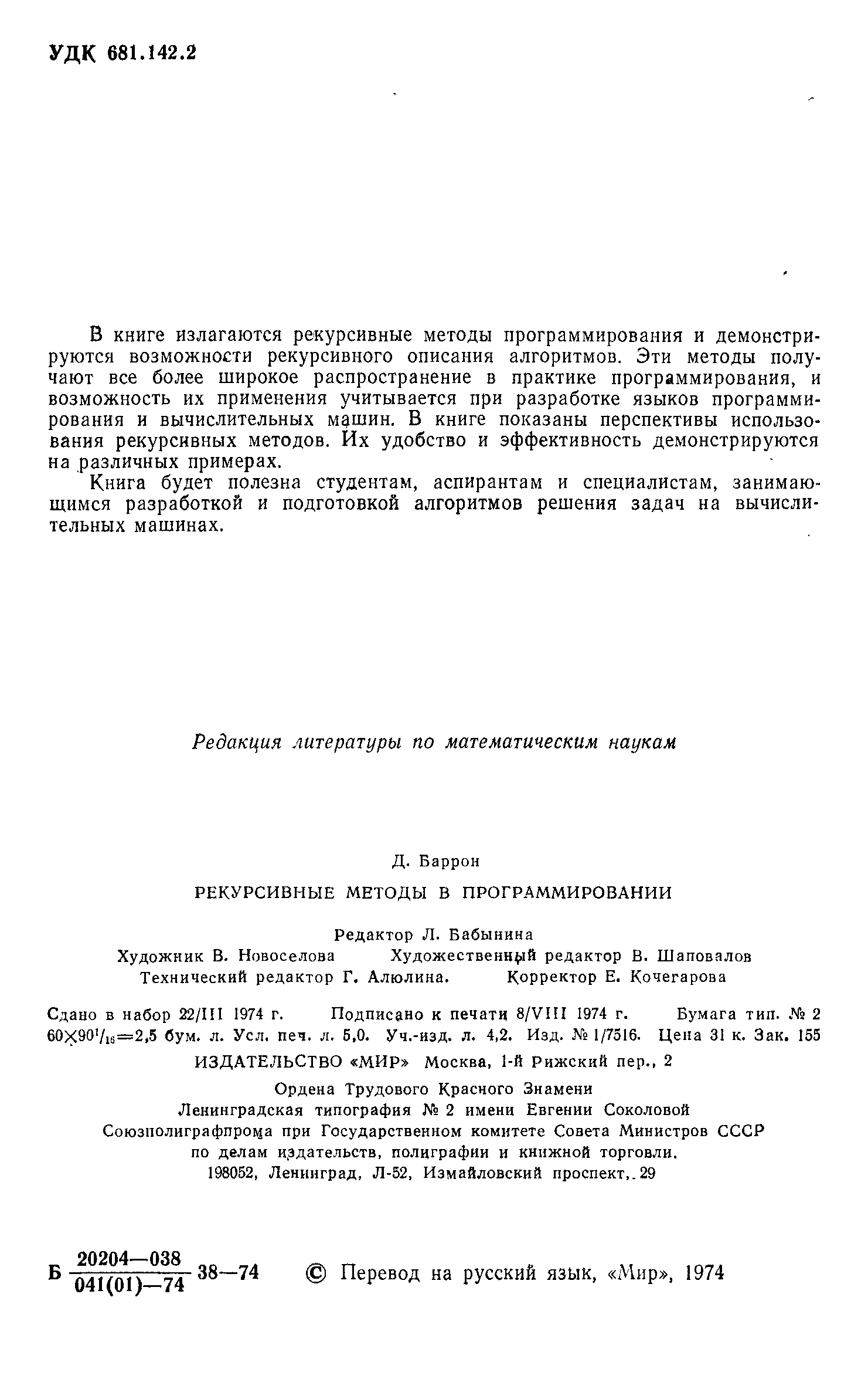 "Рекурсивные методы в программировании" - читать интересную книгу автора (Баррон Д.)