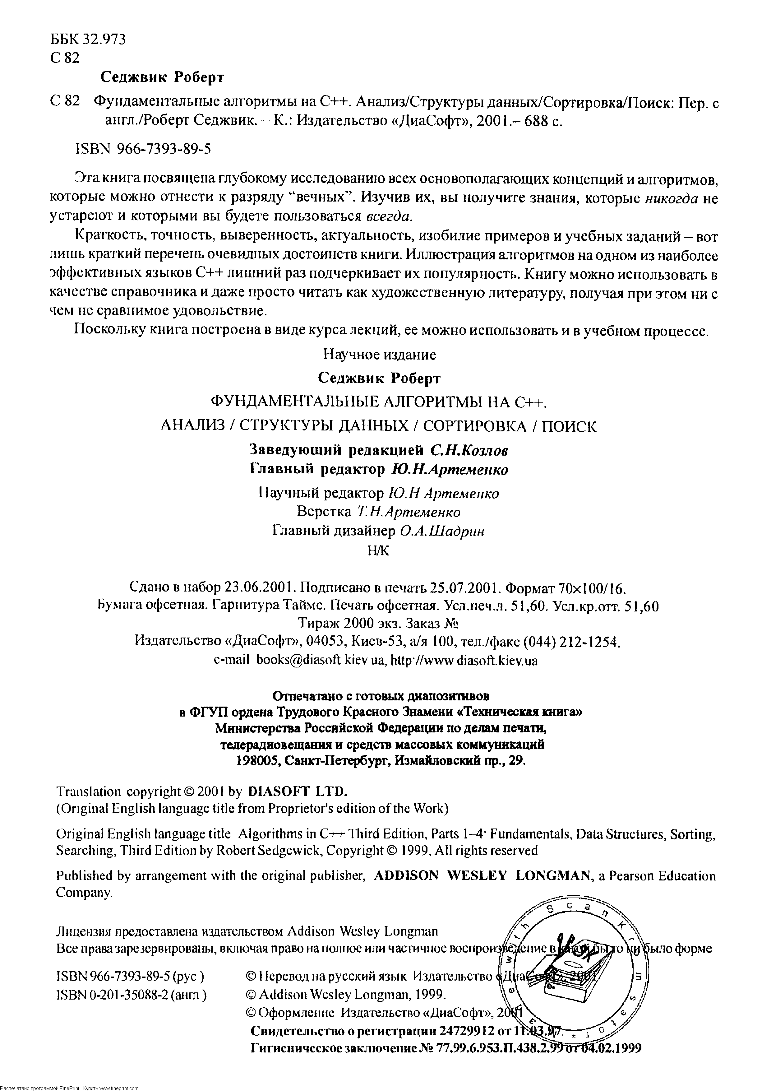"Фундаментальные алгоритмы на C++. Анализ.Структуры данных. Сортировка. Поиск" - читать интересную книгу автора