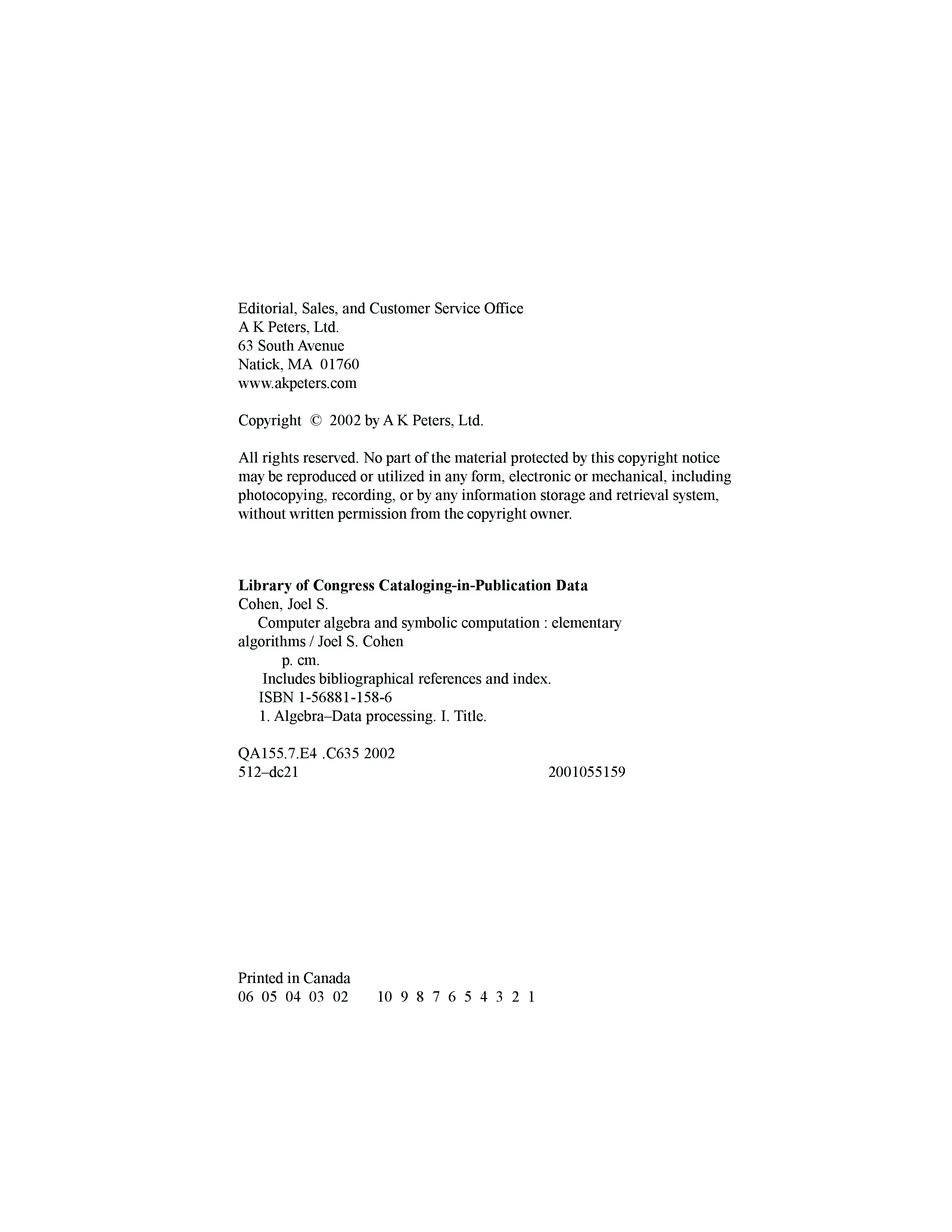"Computer algebra and symbolic computation: elementary algorithms" - читать интересную книгу автора