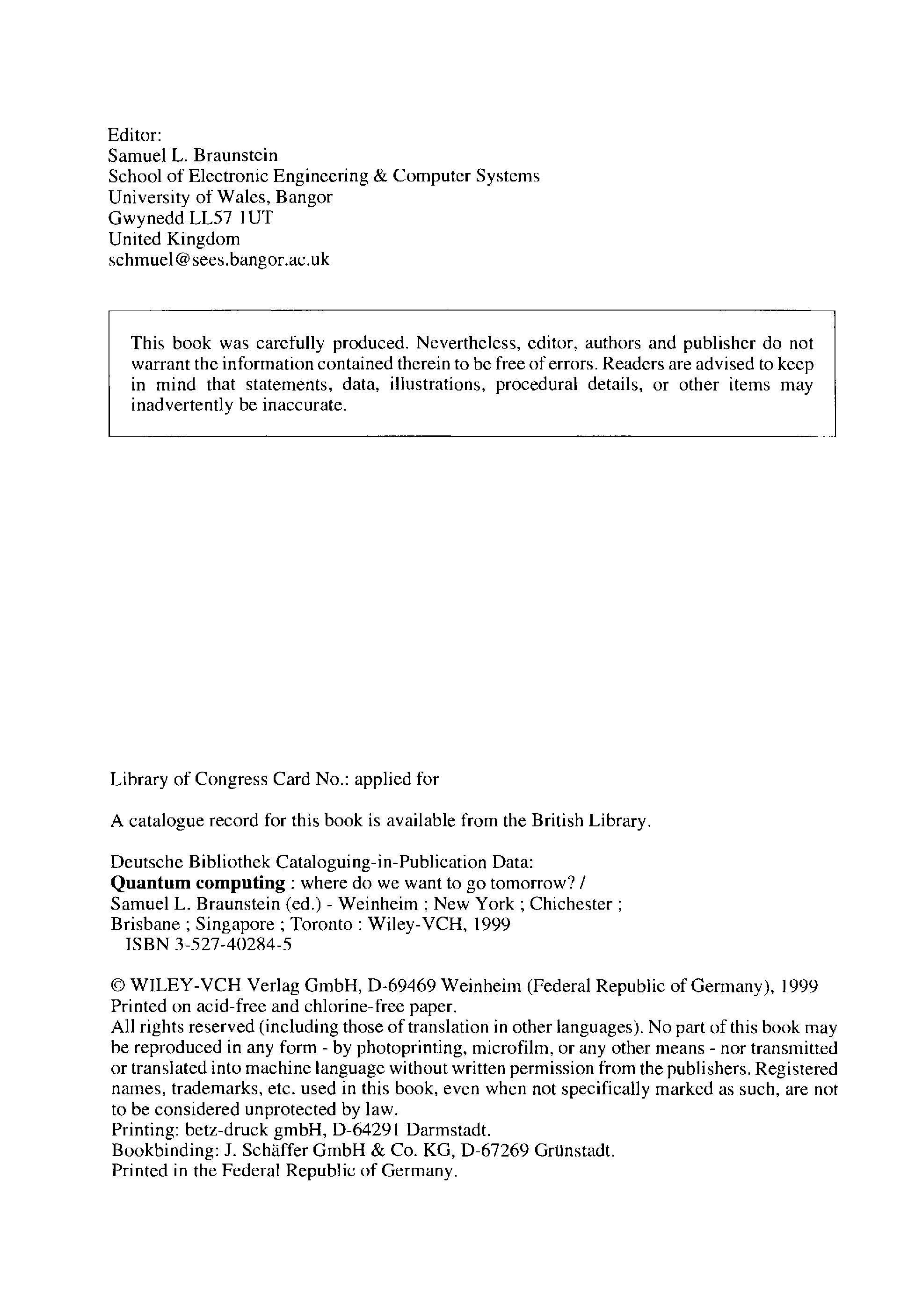 "Quantum Computing - Where Do We Want to Go Tomorrow" - читать интересную книгу автора
