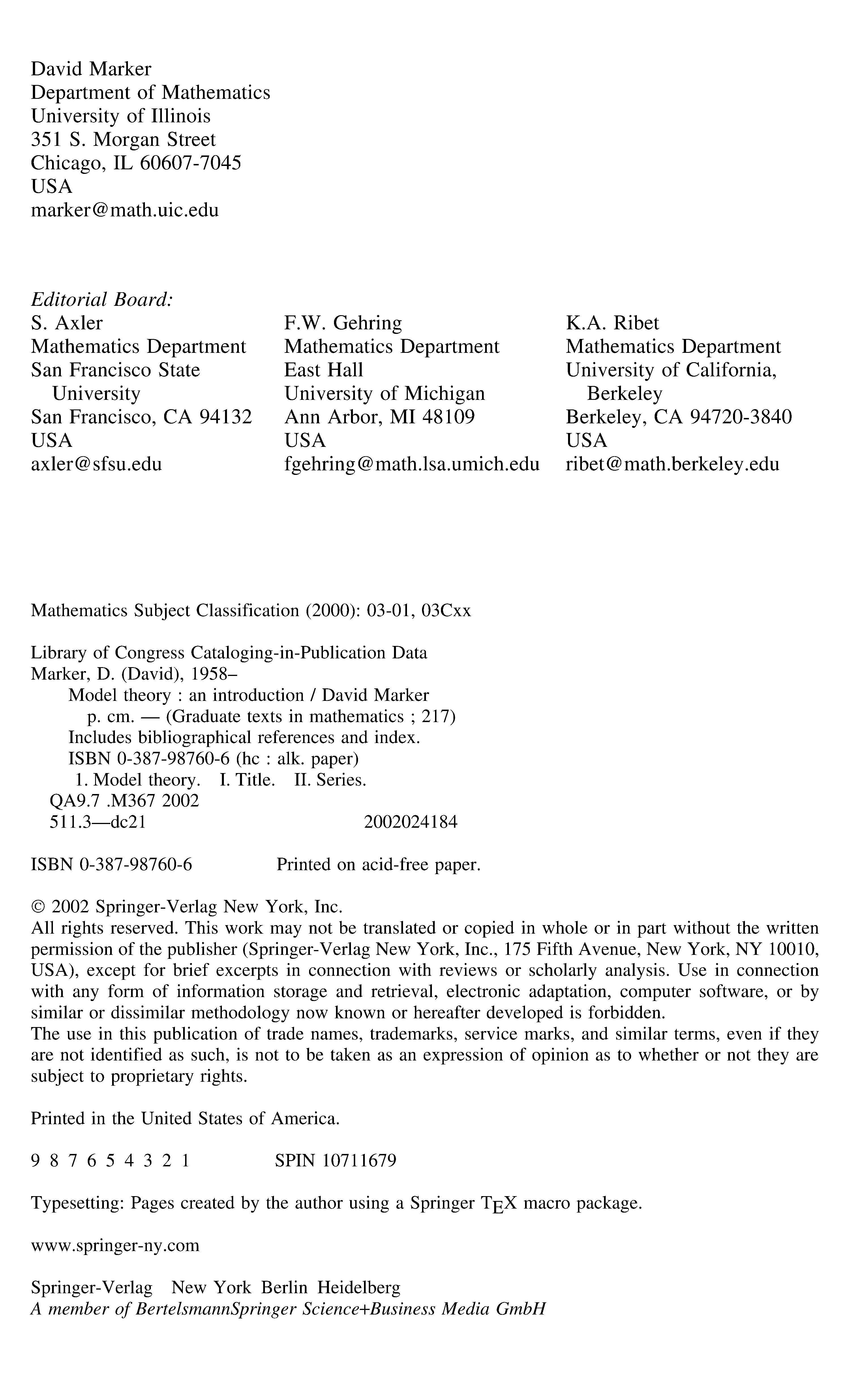 "Model theory: an introduction" - читать интересную книгу автора (David Marker)
