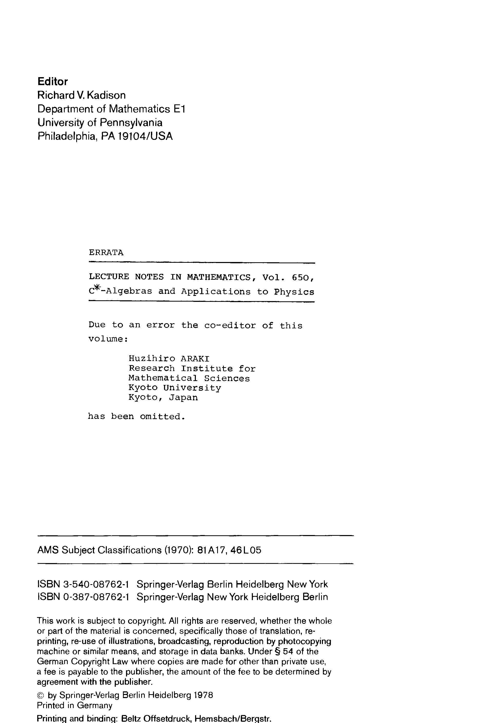 (H. Araki, R. V. Kadison)