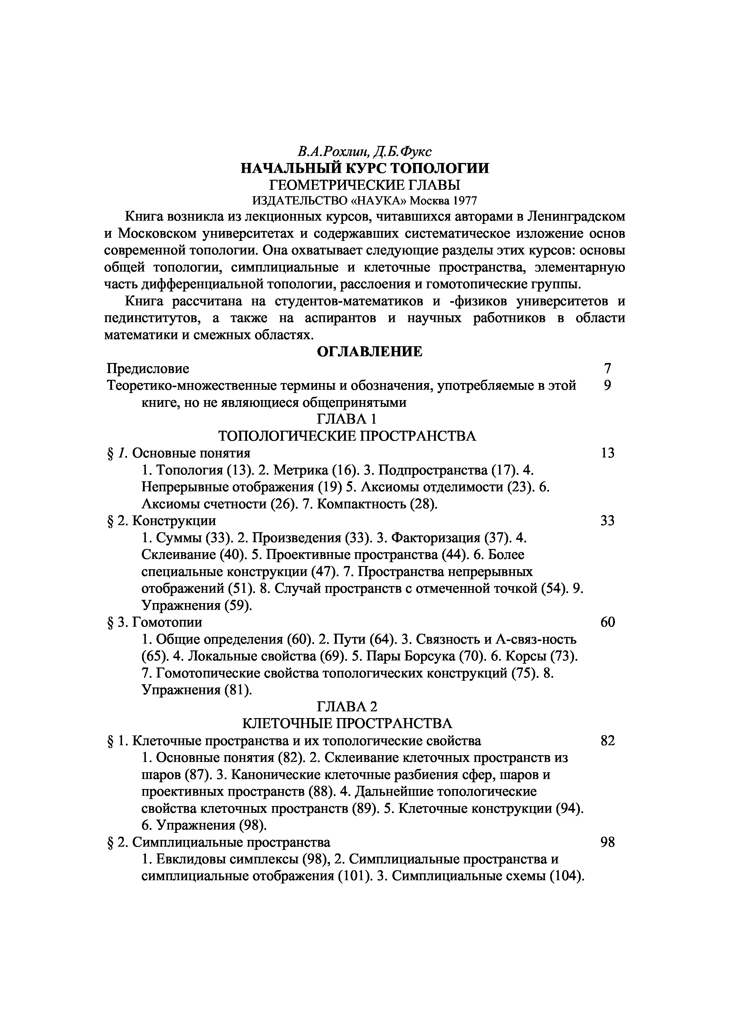 (Рохлин В.А., Фукс Д.Б.)