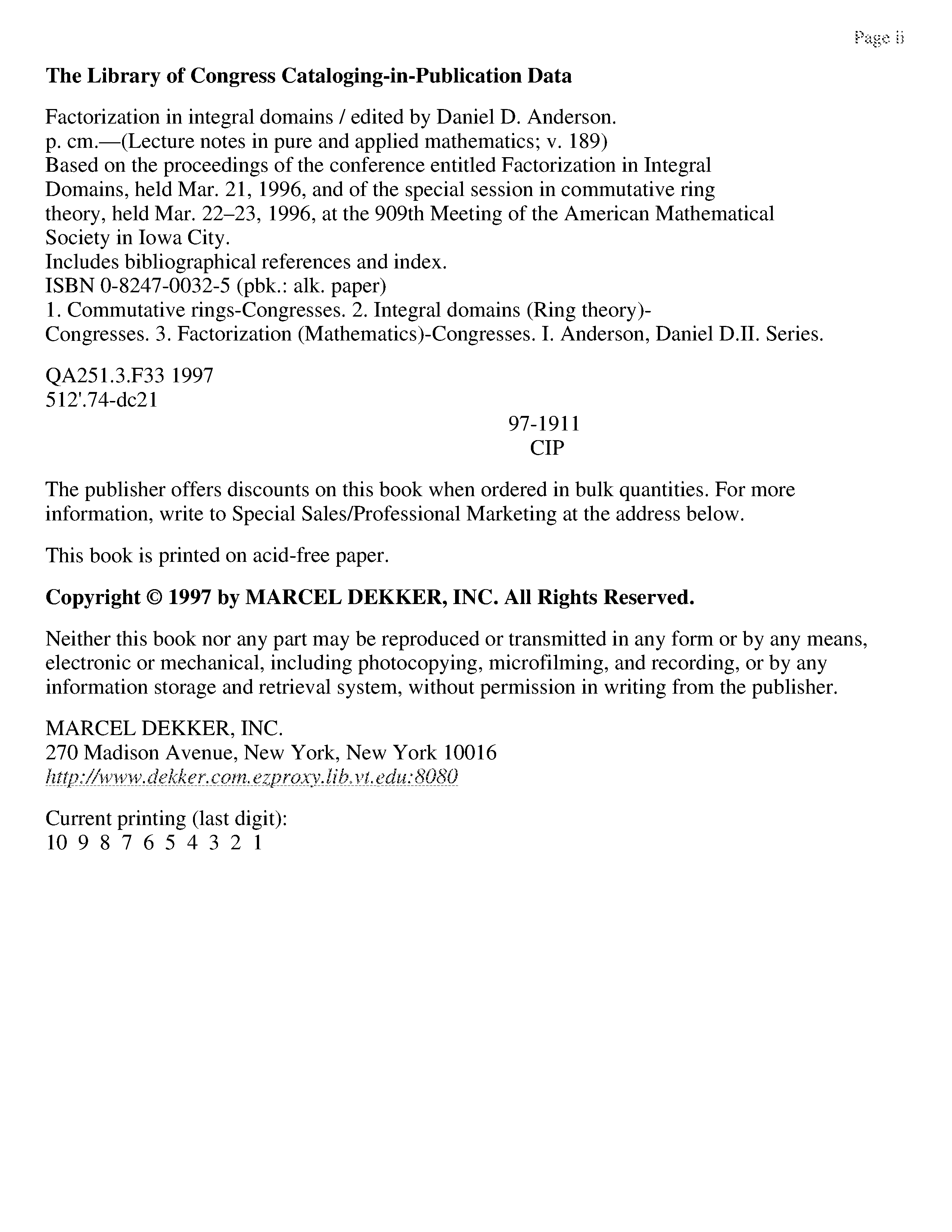 "Factorization in Integral Domains" - читать интересную книгу автора (Daniel Anderson)