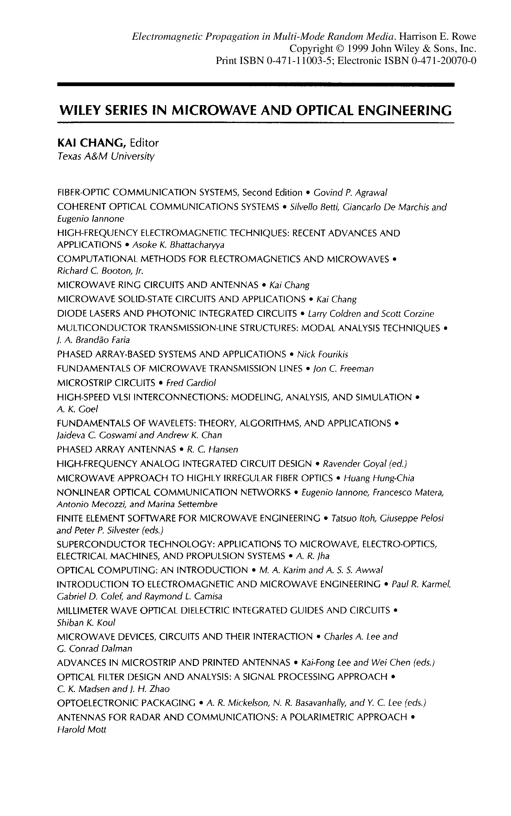 "Electromagnetic Propagation in Multi-mode Random Media" - читать интересную книгу автора (Harrison E. Rowe)