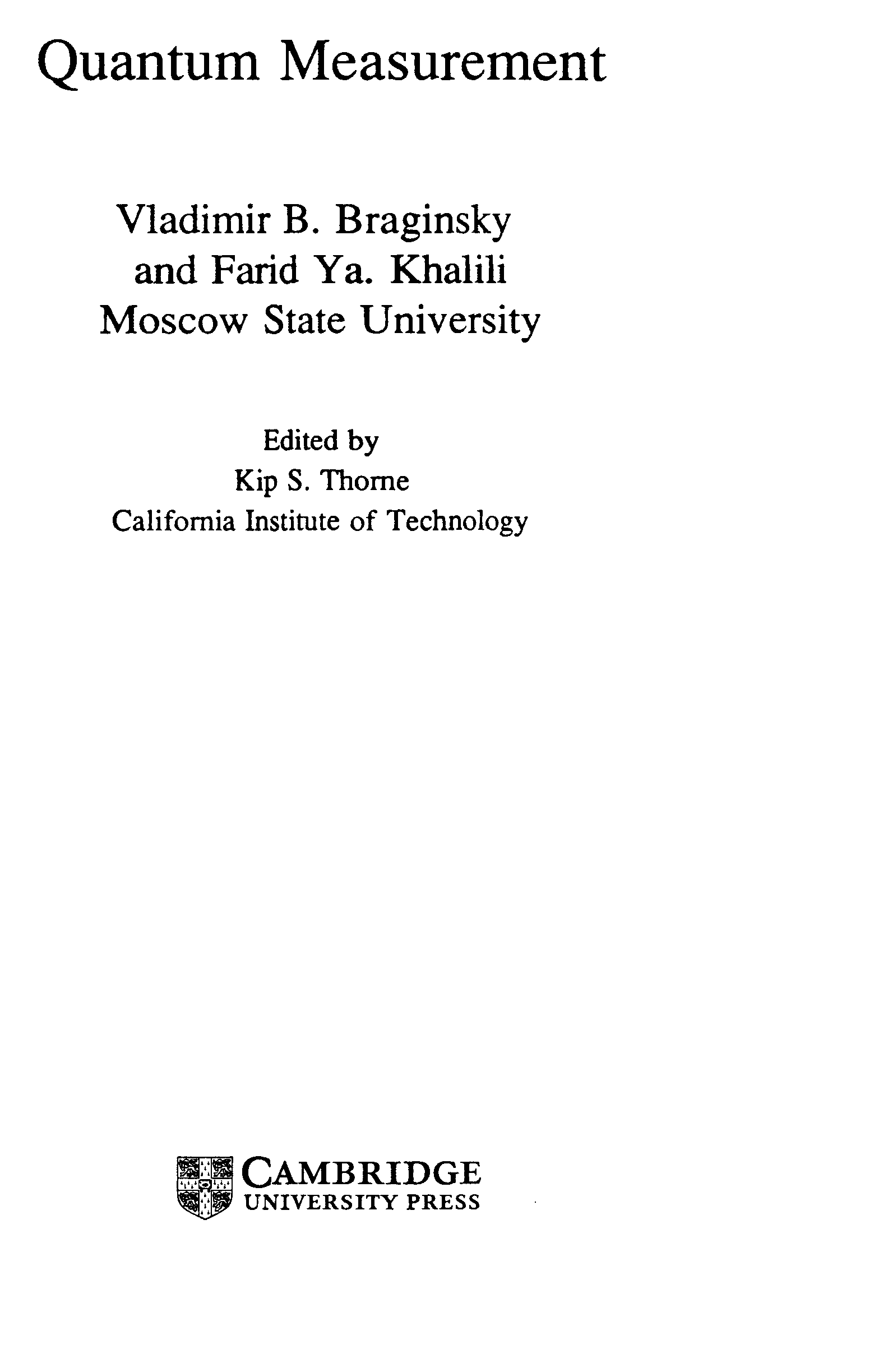 (Vladimir B. Braginsky, Farid Ya Khalili, Kip S. Thorne)