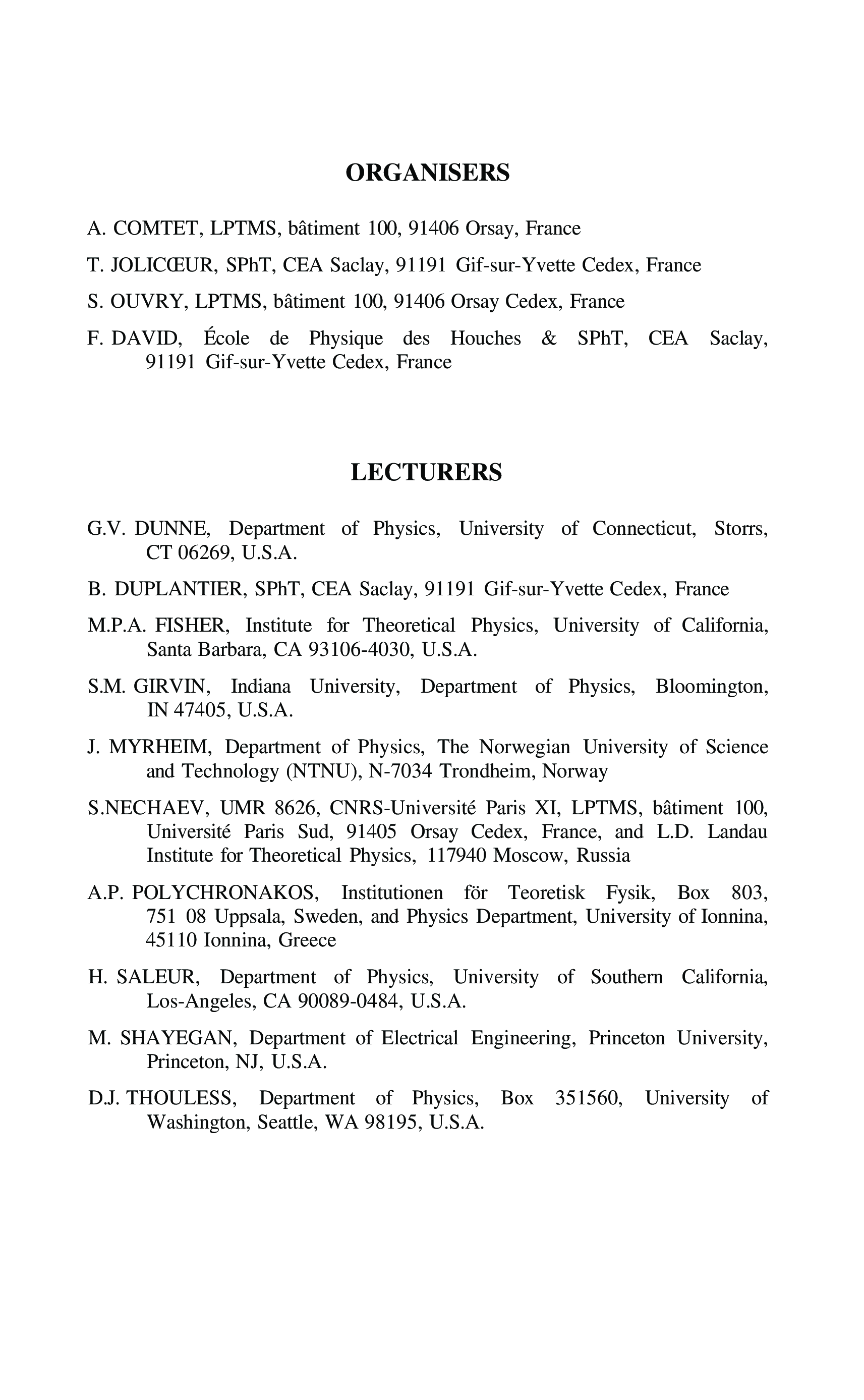 (A. Comtet, T. Jolicoeur, S. Ouvry, F. David)