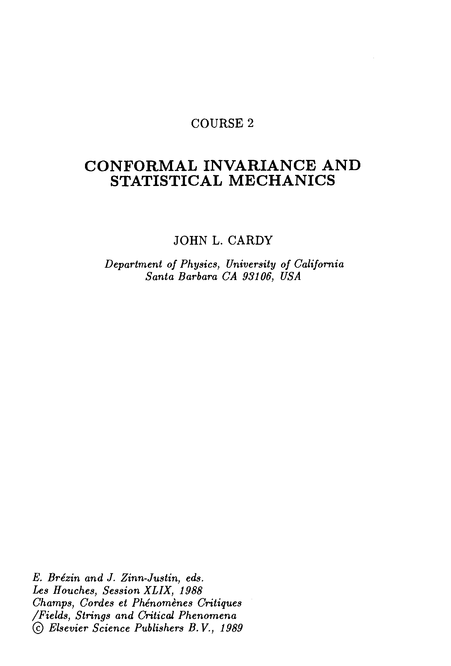 "Conformal invariance and statistical mechanics" - читать интересную книгу автора