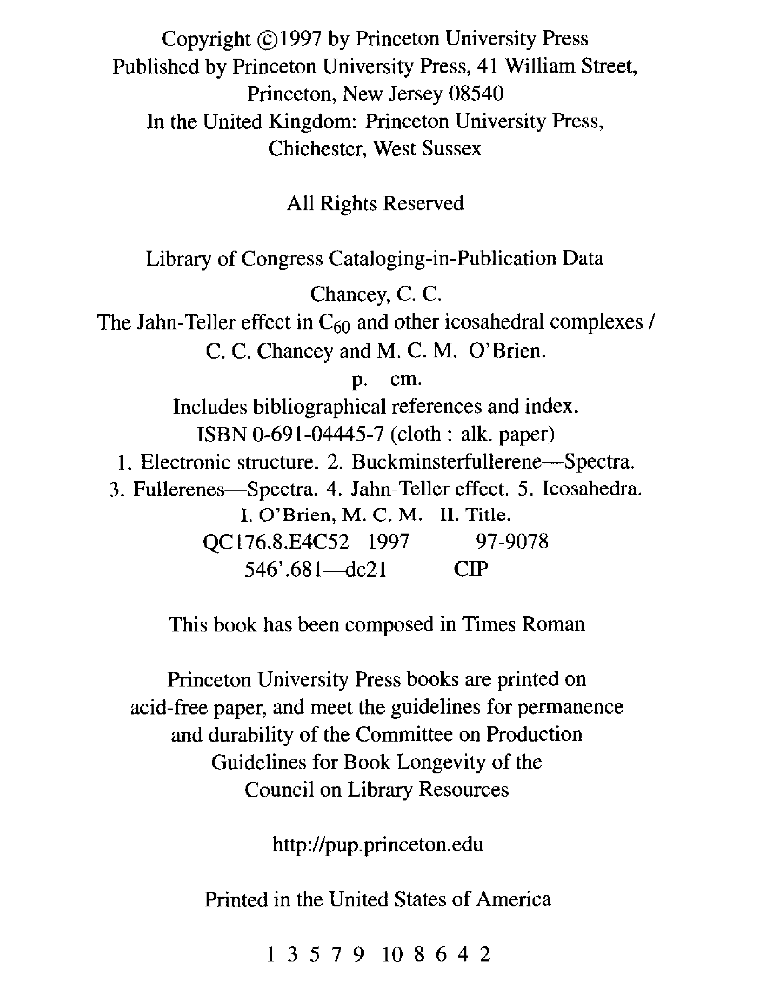 "The Jahn-Teller Effect in C60 and Other Icosahedral Complexes" - читать интересную книгу автора (C. C. Chancey, M. C.M. O'Brien)