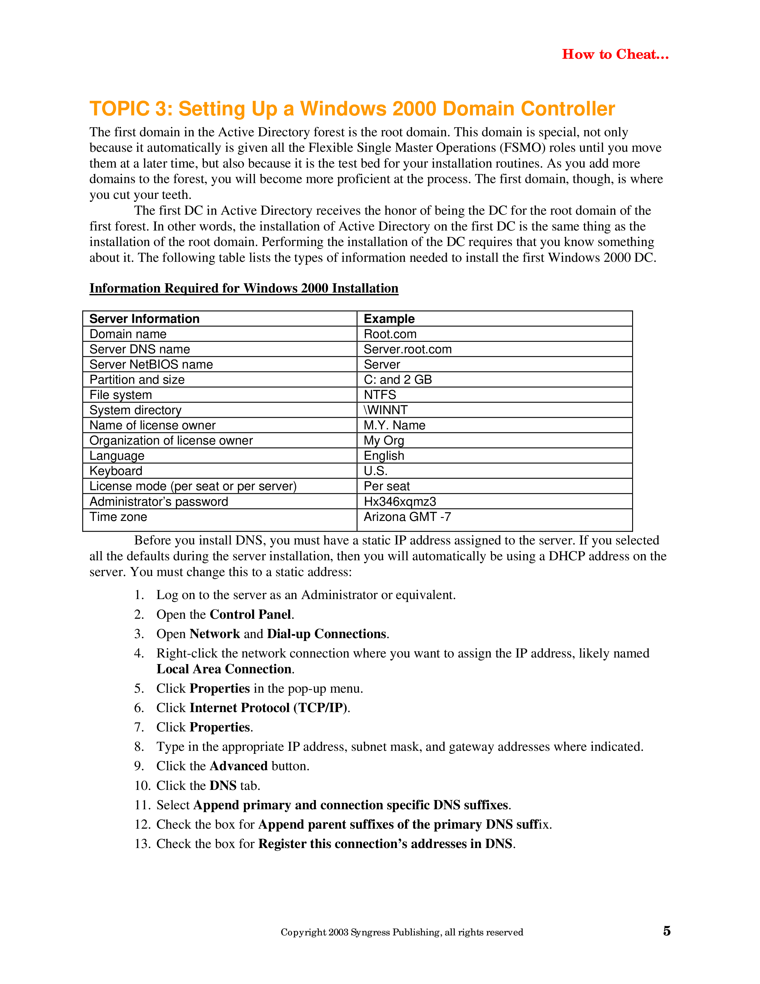 "How to Cheat at Installing, Configuring and Troubleshooting Active Directory and DNS" - читать интересную книгу автора (Craft M., Shinder D.L., Crump R.)