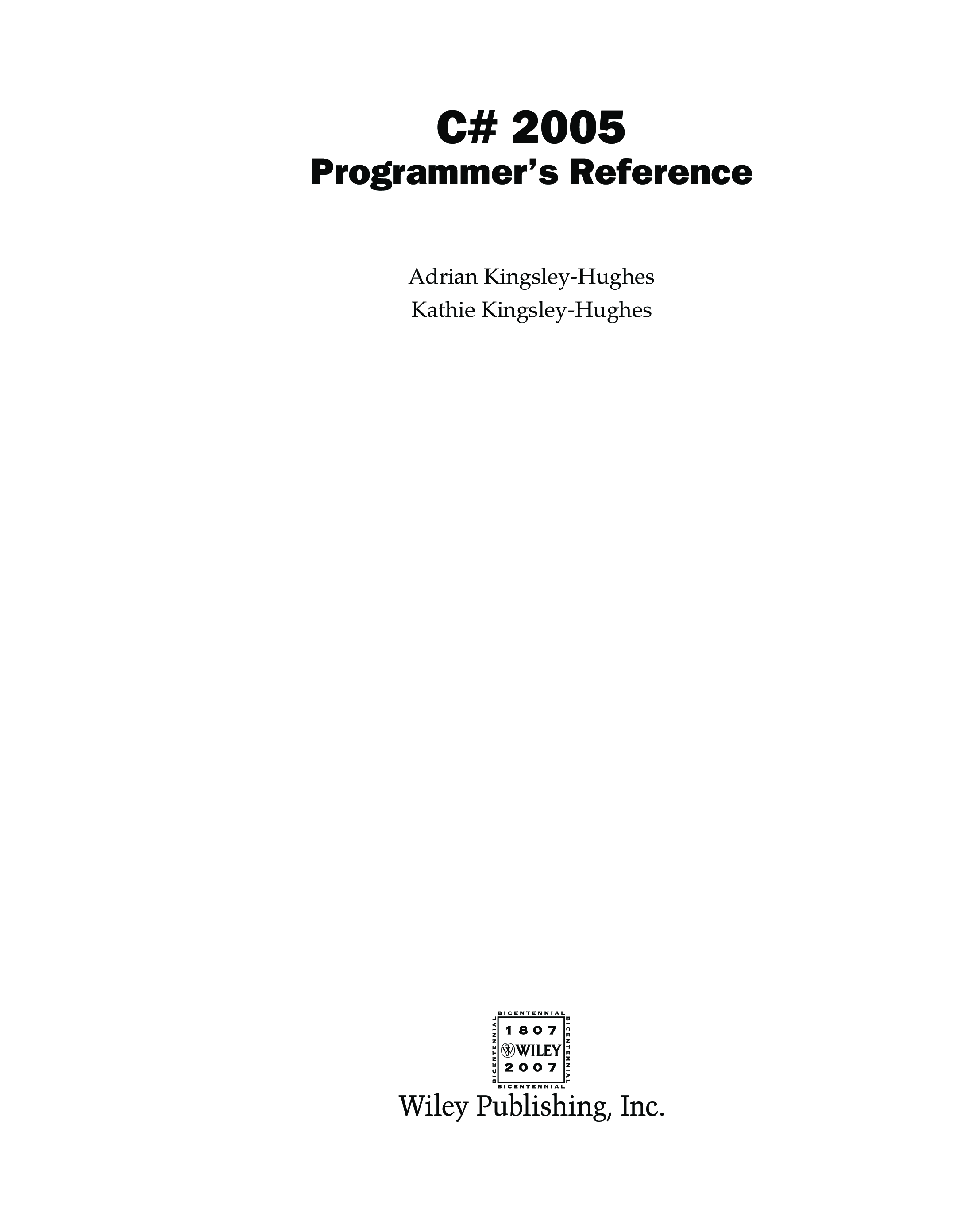 "C# 2005 Programmer's Reference" - читать интересную книгу автора (Adrian Kingsley-Hughes, Kathie Kingsley-Hughes)
