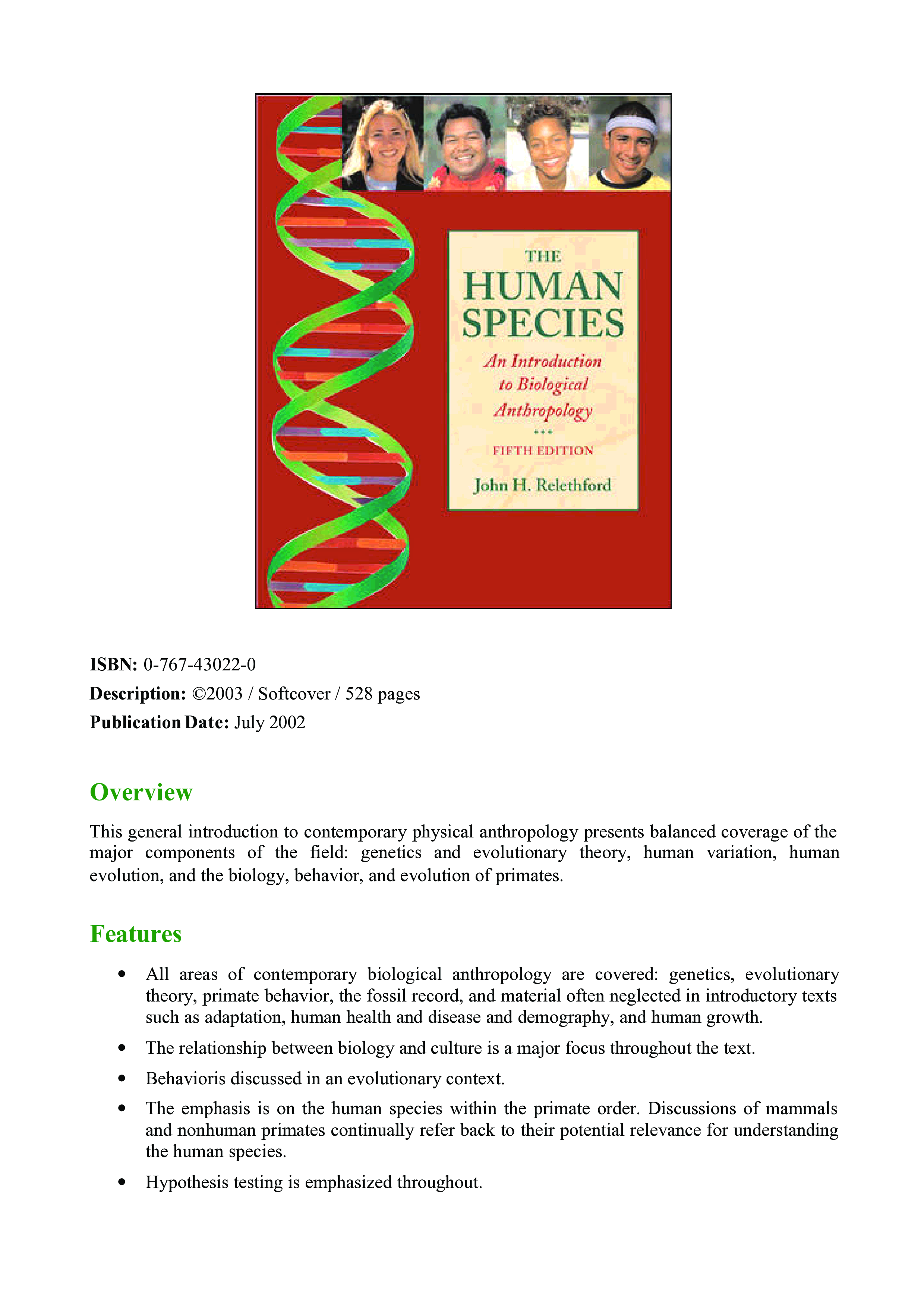 "The Human Species: An Introduction To Biological Anthropology" - читать интересную книгу автора