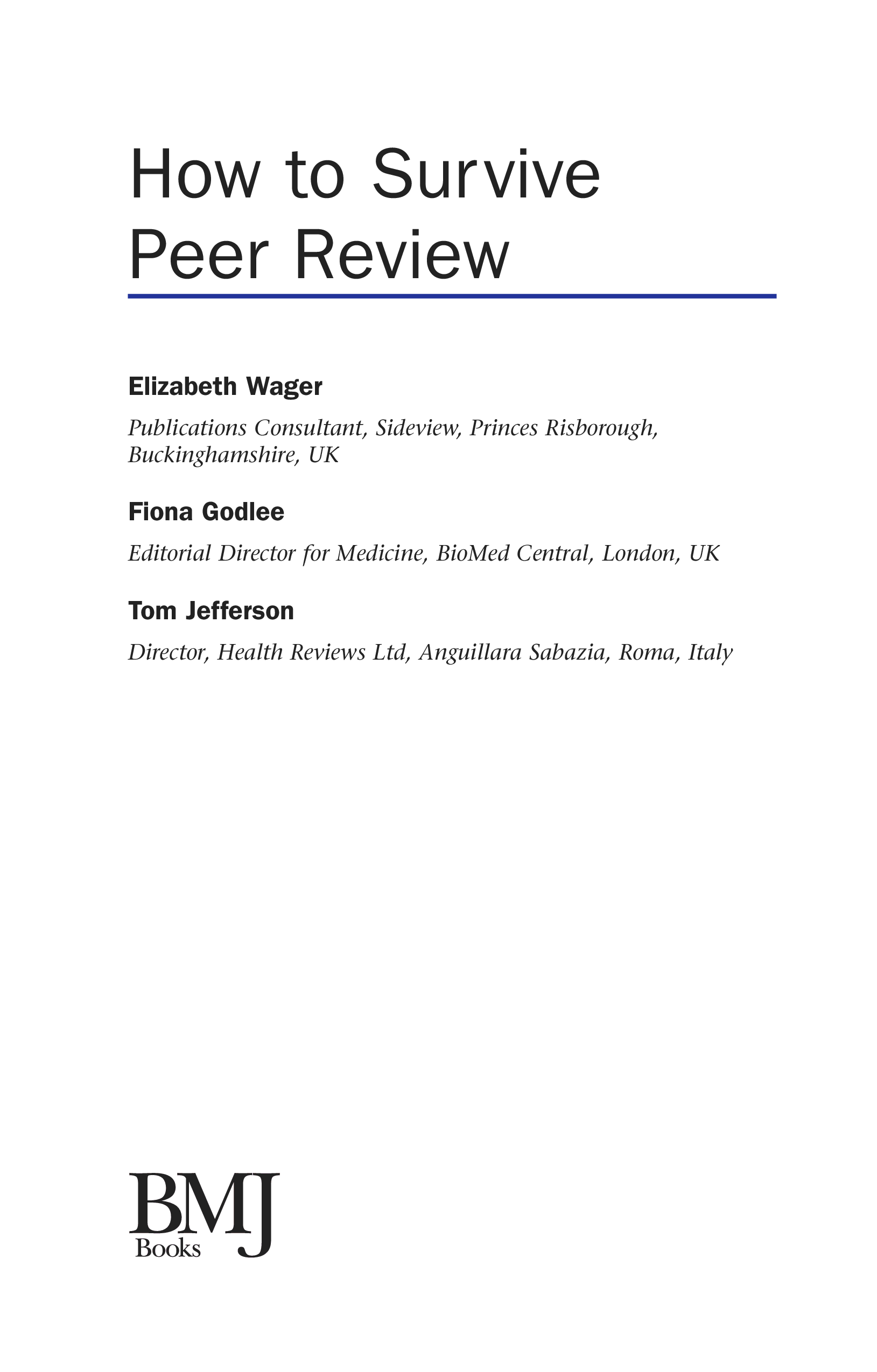 (Elizabeth Wager, Fiona Godlee, Tom Jefferson)