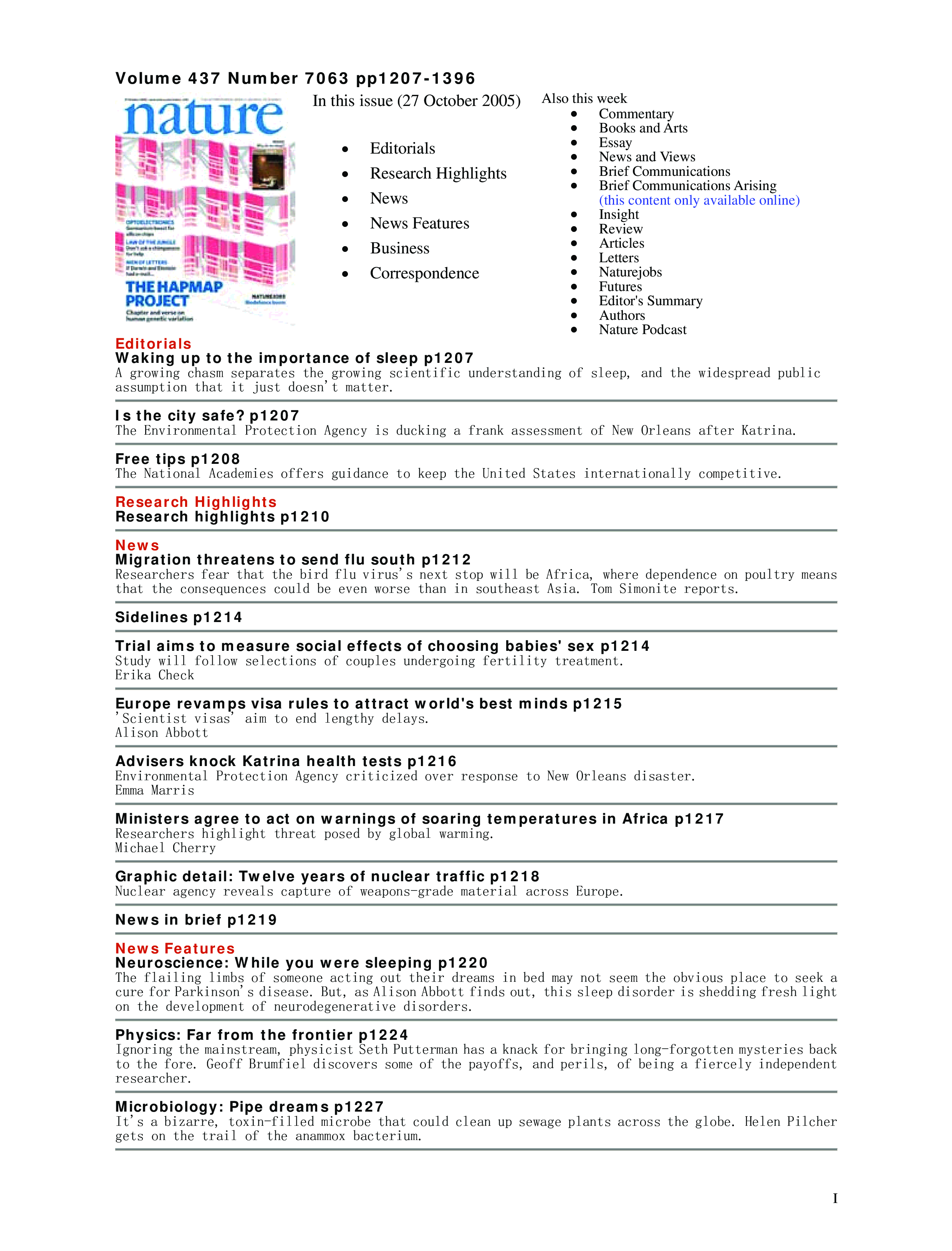 "Nature (Vol. 437, No. 7063, 27 October 2005)" - читать интересную книгу автора