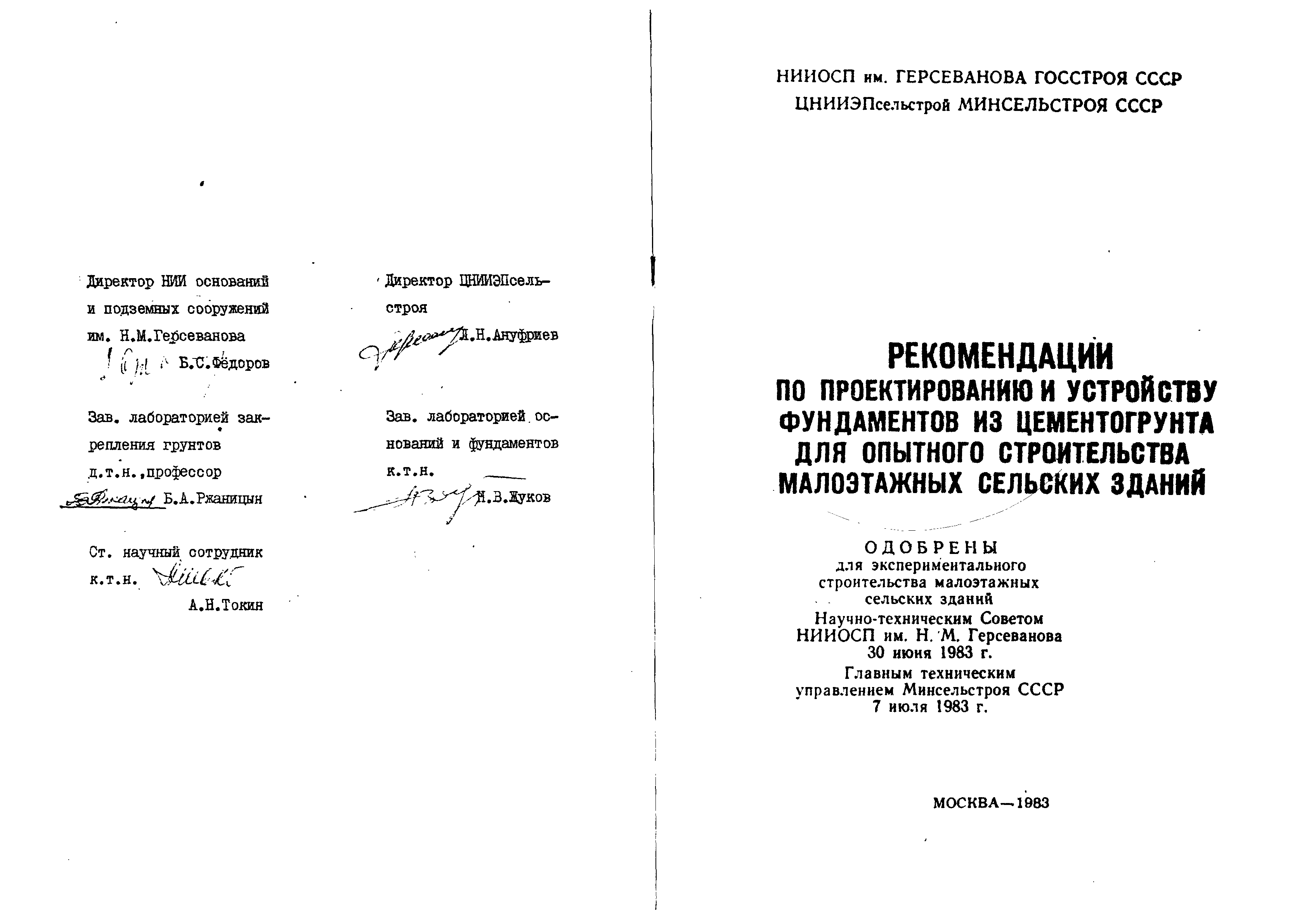 "Рекомендации по проектированию и устройству фундаментов из цементогрунта бурссмесительным способом для опытного строительства сельских зданий. " - читать интересную книгу автора (Авторы: НИИОСП им. Н.М.Герсеванова (проф....)
