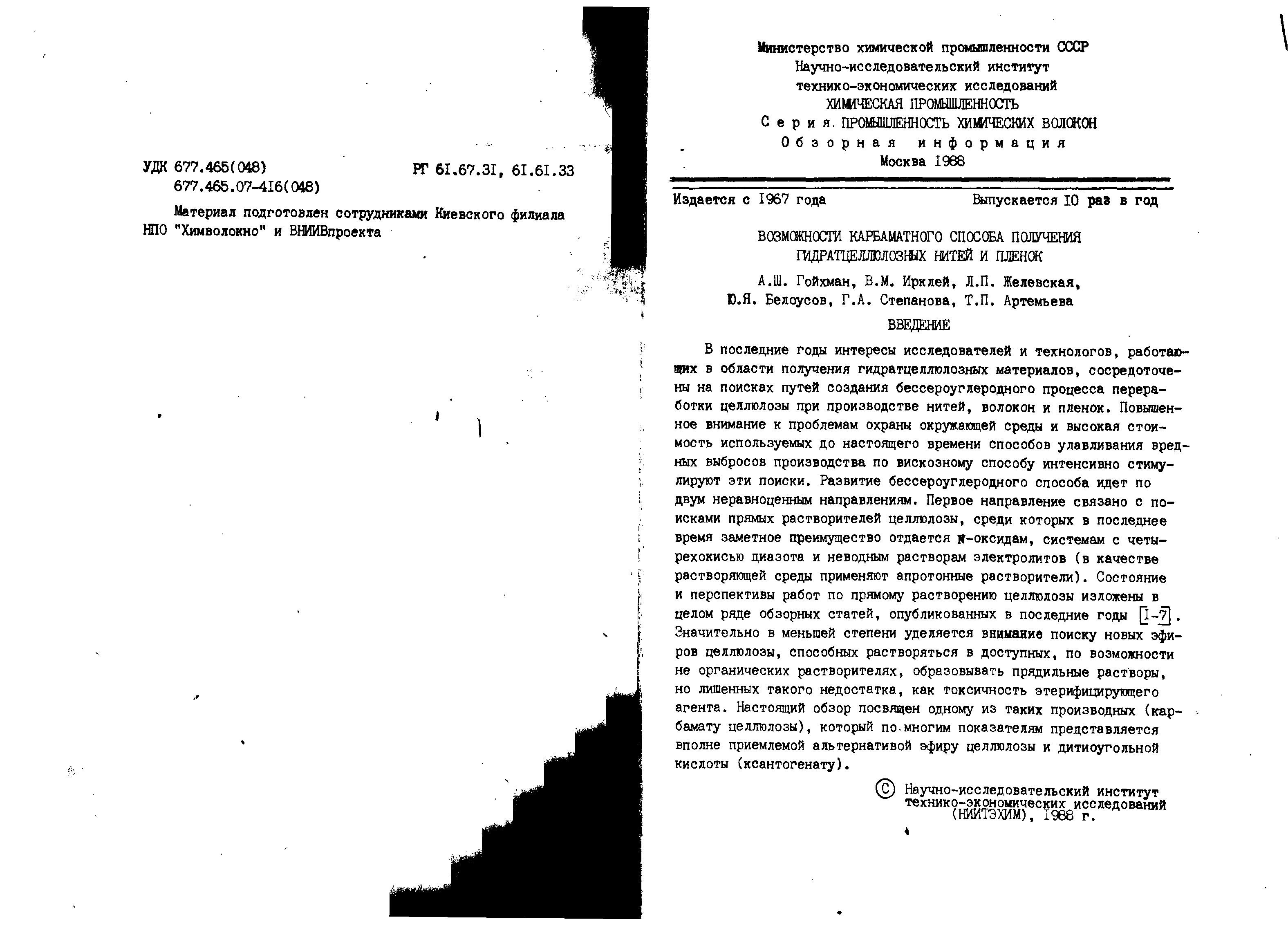 "Возможности карбаматного способа получения гидратцеллюлозных нитей и пленок. Обзорная информация" - читать интересную книгу автора