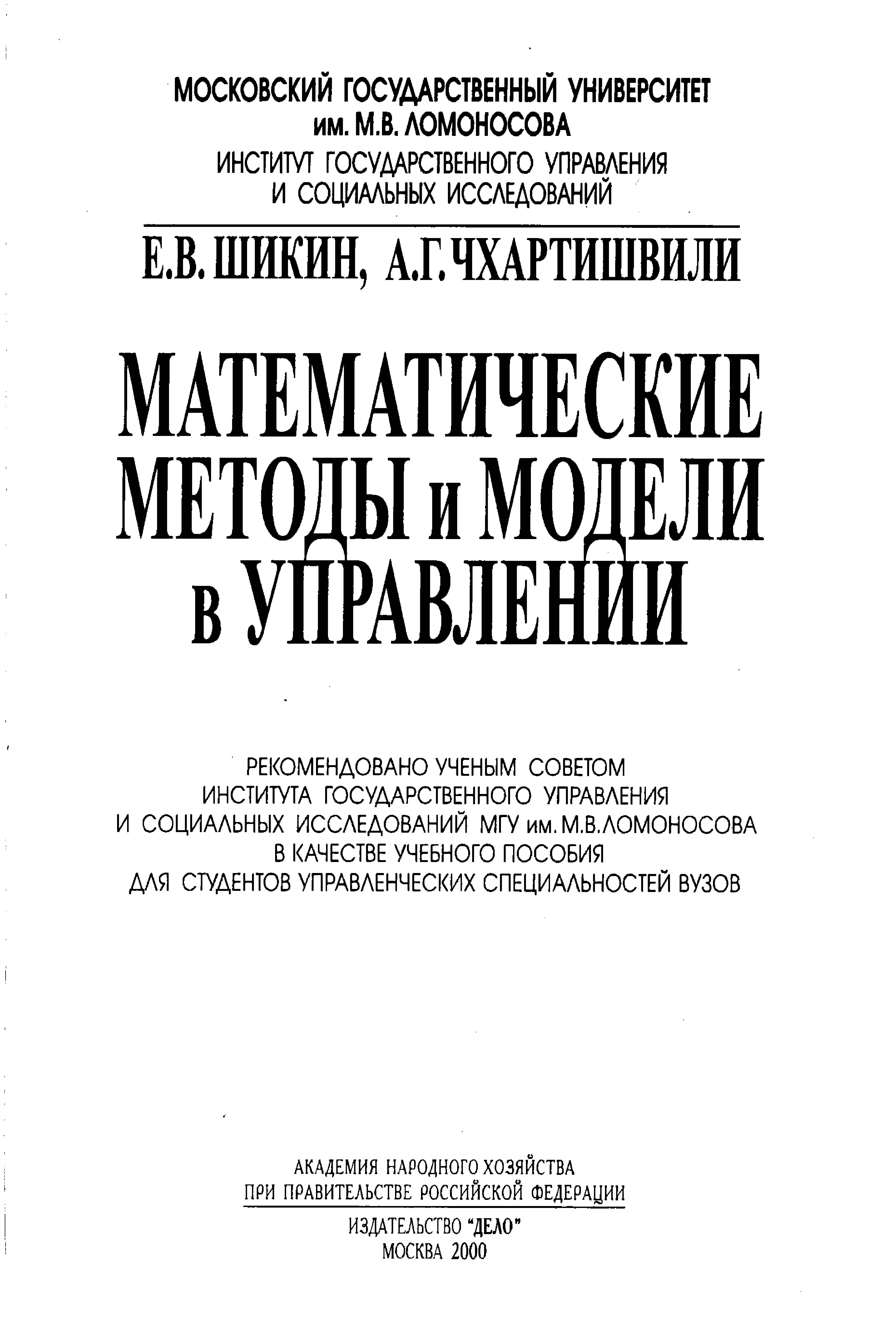 "Математические методы и модели в управлении" - читать интересную книгу автора (Шикин Е. В., Чхартишвили А. Г.)