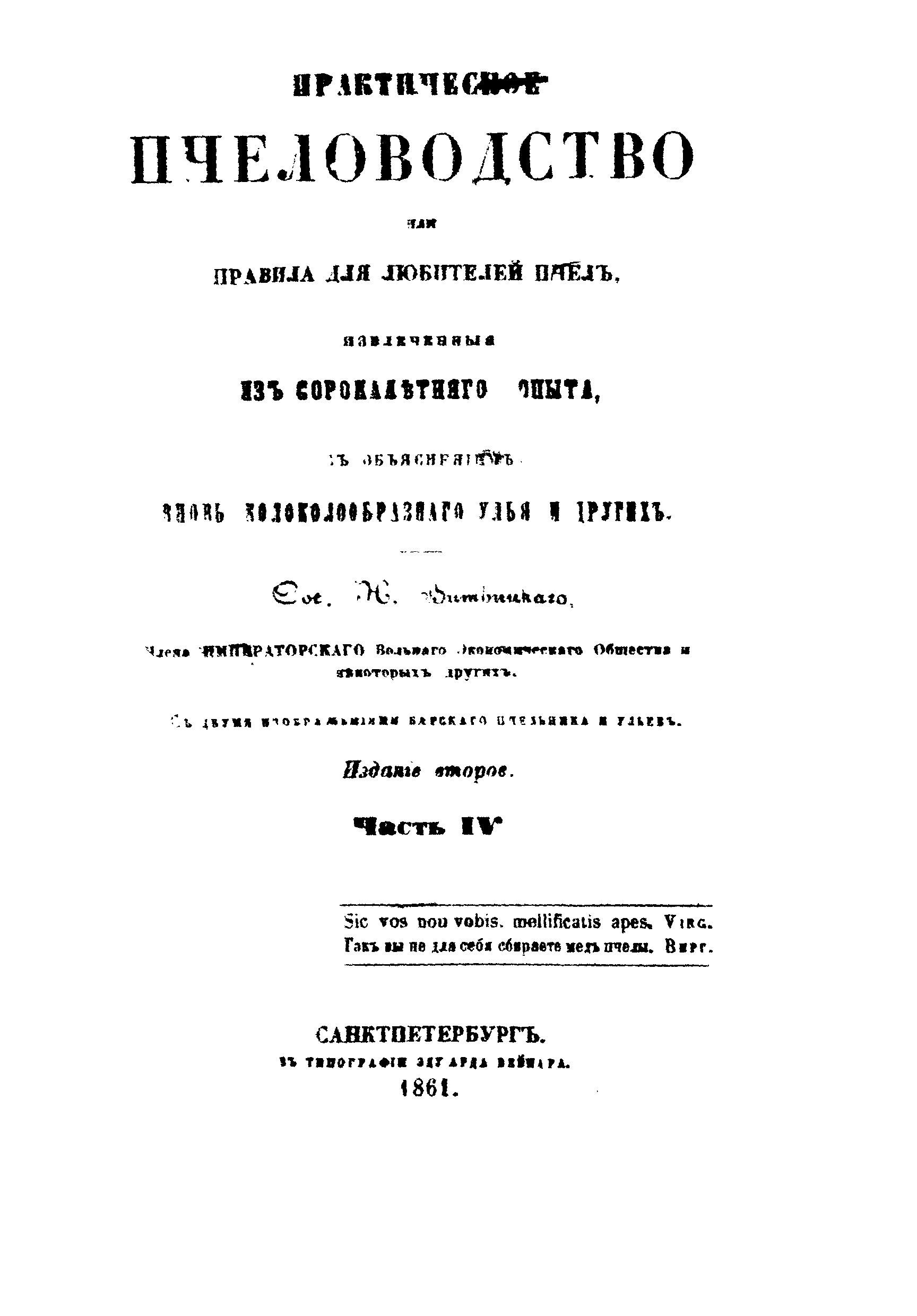 "Практическое пчеловодство, или Правила для любителей пчелъ, извлеченныя изъ долговременнаго опыта, съ объясненiемъ вновь усовершенствованныхъ ульевъ. Часть 1" - читать интересную книгу автора