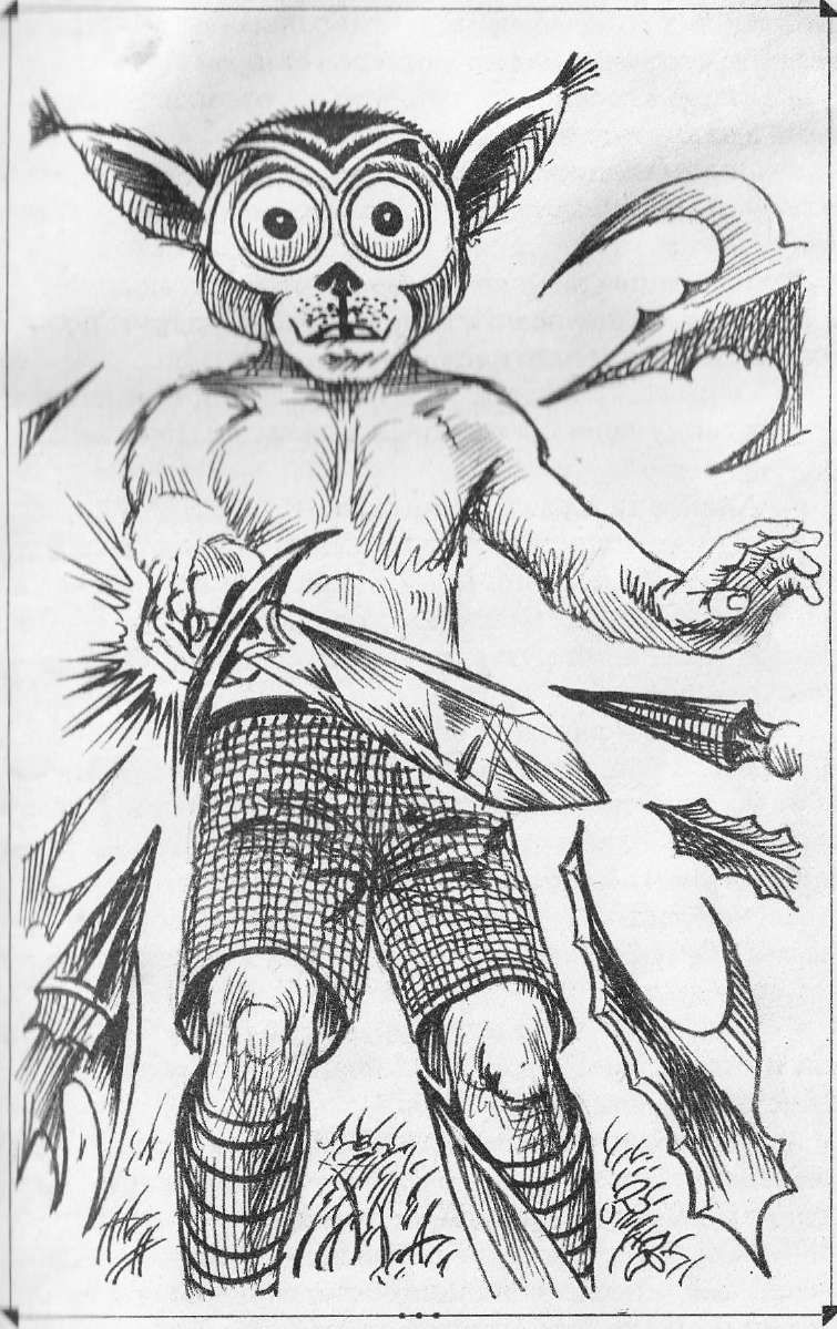 "Последние Врата" - читать интересную книгу автора (Райтер Мартин)Глава V ЗАПАДНЯ ДЛЯ ГЛЮМОВСтражник, на которого пал выбор глюмов, стоял, прислонясь плечом к дереву и опираясь рукой на дубину. Он внимательно смотрел в просвет между деревьями, лишь изредка поворачивая голову то в одну, то в другую сторону. Командир выдвинул его метров на двести от лагеря, и с такого расстояния ни он, ни его товарищи в лагере видеть друг друга не могли. — Здоровый он, проворчал Бурунькис. —Боюсь, нам с ним не сладить. Чепуха! Я схвачу его за ноги, чтоб не сбежал, а ты в это время стукнешь его рукояткой меча по голове. Только тебе надо будет хорошенько подпрыгнуть. — Не так то легко в прыжке оглушить. Конечно, нелегко. — Капунькис понимающе кивнул, — но выбора все равно нет. Сейчас мы подберемся поближе, а как останется метров пять, мы и кинемся на дурака. — Только команду подам я, предупредил Бурунькис. — Нет, я. — Раз бить придется мне, значит, и команду подам я. — Ладно. А какая будет команда? — Я крикну: «Хоп!» И ты хватай скрэба за ноги. Договорившись, глюмы перебежками — от дерева к дереву — стали приближаться к намеченной жертве. Хотя они старались двигаться бесшумно, но листья то и дело шуршали под ногами, а иной раз потрескивали сухие ветки, присыпанные листвой. Но тугоухий скрэб ничего не слышал. Он время от времени переминался с ноги на ногу, зевал. Когда до зеленошкурого осталось метров десять, а глюмы укрылись за стволом старого ясеня, в лесу закричала птица, потом еще одна и еще. Скрэб вздрогнул, но позы не переменил, разве что как-то весь подобрался, вглядываясь в лесную чащу. — Вот дурень так дурень! — презрительно сказал Капунькис. — За его спиной можно сейчас пленить всю армию, а он так и будет вперед смотреть. Идиот! Бурунькис предостерегающе прижал палец к губам. Глюмы прошмыгнули к одному дереву, к другому. Теперь до скрэба осталось не больше трех шагов. Придется отсюда нападать, деревья закончились, — прошептал Бурунькис. Братья вышли из-за дерева, изготовились к атаке, и тут откуда-то слева закричала птица. Зеленошкурый карлик внезапно прыгнул в сторону, развернулся и, глянув на ошеломленных глюмов, обнажил в ухмылке клыки. — Ну вот, наконец-то добрались, недомерки. А то плететесь, плететесь, ждать устал! Скрэб приложил ко рту ладонь и издал звук, похожий на птичий крик. И тут же из-за деревьев показались скрэбы, которые, как полагали Капунькис и Бурунькис, беззаботно развалились в лагере на поляне. — Проклятая Хель! — разочарованно вздохнул Бурунькис. — Кто же на кого охотился? Откуда малышам было знать, что зеленошкурые карлики всегда расставляют охрану таким образом, чтоб каждый стражник непременно наблюдал товарища слева и справа от себя. Мало того, кроме стражи, демонстративно выставлявшей себя напоказ, существовала стража скрытая, которая, маскируясь на местности, наблюдала как за территорией, так и за «показной» стражей. Именно скрытая стража обнаружила глюмов первой и с помощью условных сигналов оповестила караульных и солдат в лагере. Пока глюмы крались от дерева к дереву, солдаты из лагеря успели замкнуть окружение. — Напрасно радуешься! — воинственно крикнул Капунькис, обнажая меч. — Может, нас твои дружки, клыкастые красавчики, и убьют, но уж тебе от этого легче не будет! Бурунькис высоко подпрыгнул, попытался дотянуться мечом до го