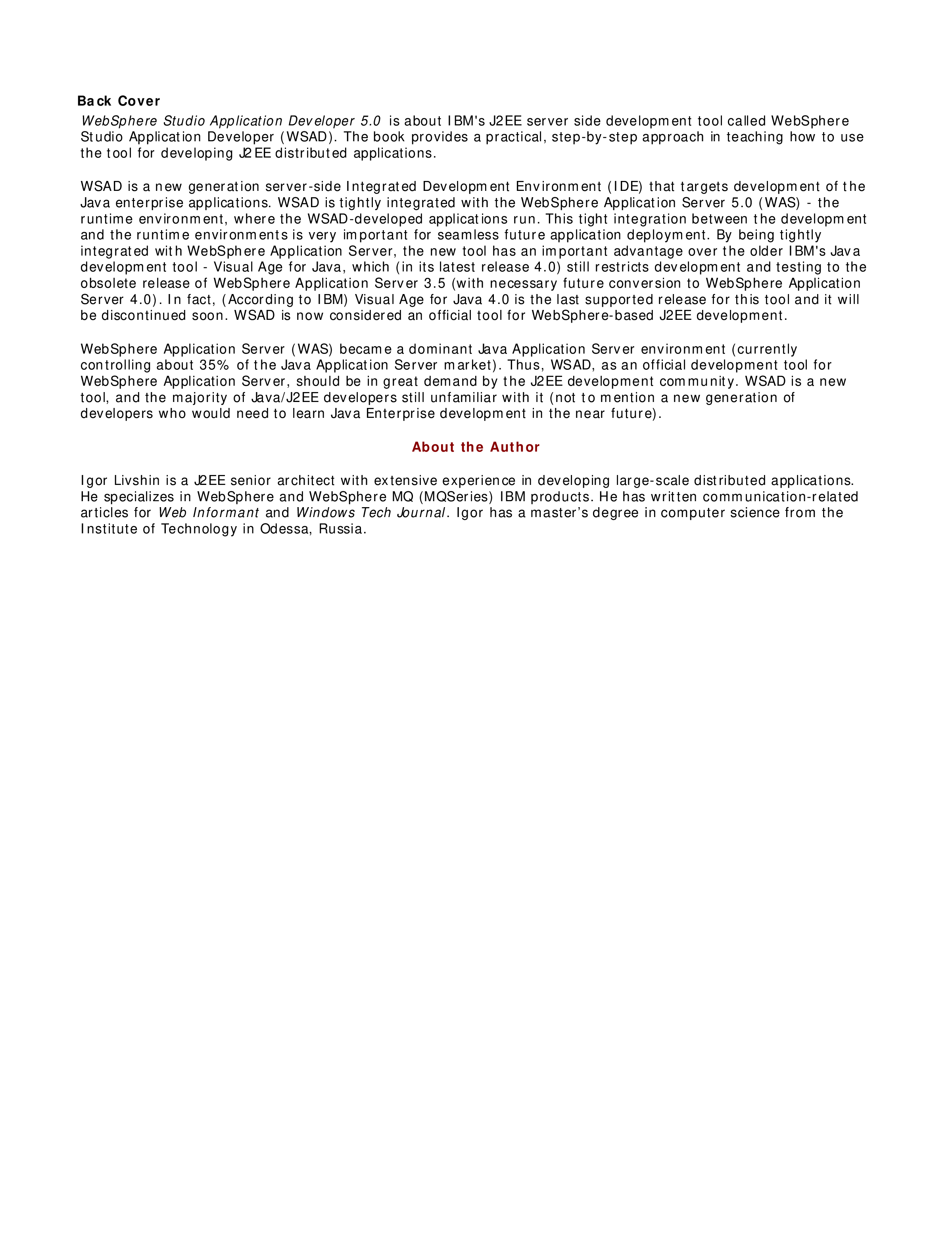 "WebShere Studio Application Developer 5.0 Practical J2EE Development" - читать интересную книгу автора