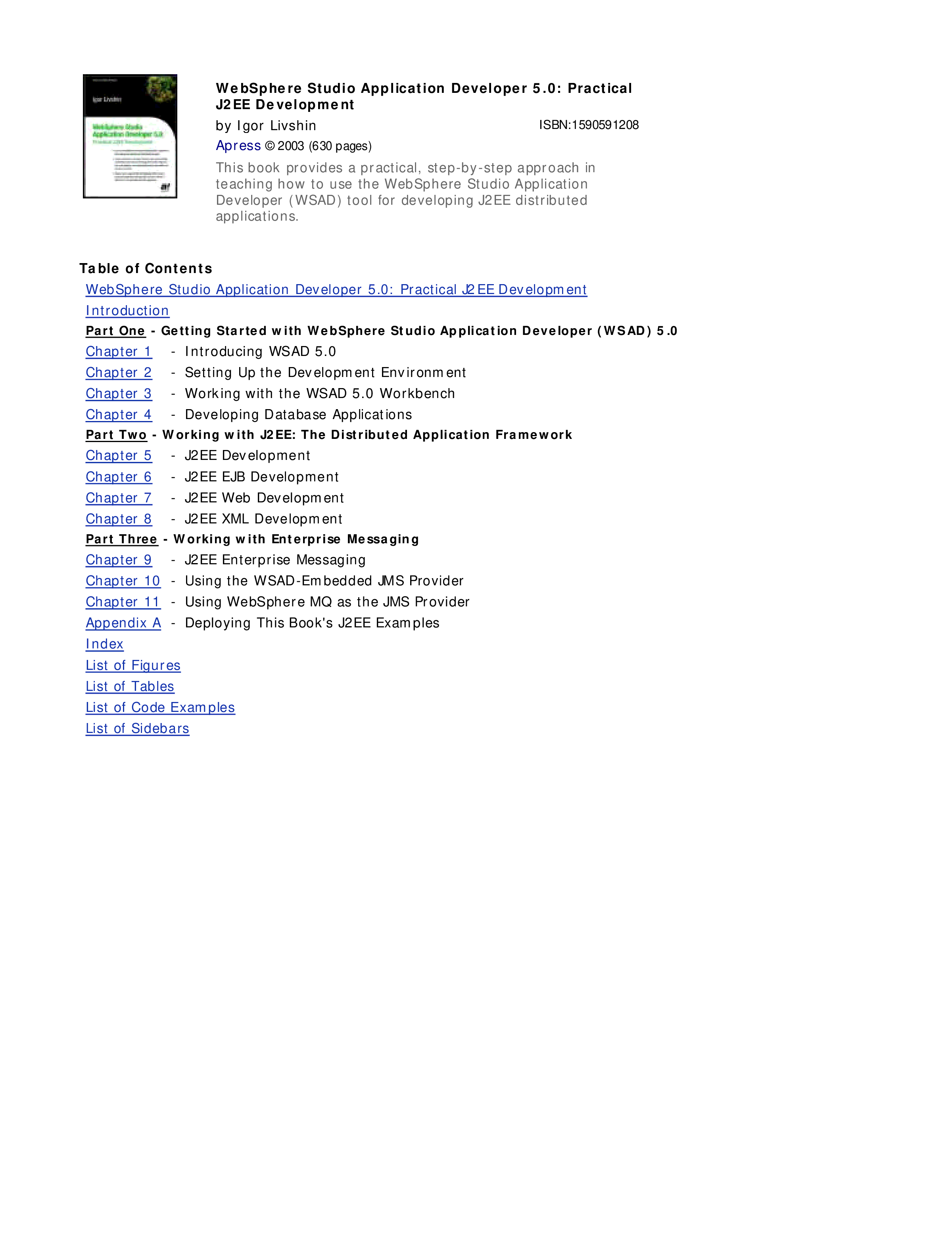"WebShere Studio Application Developer 5.0 Practical J2EE Development" - читать интересную книгу автора