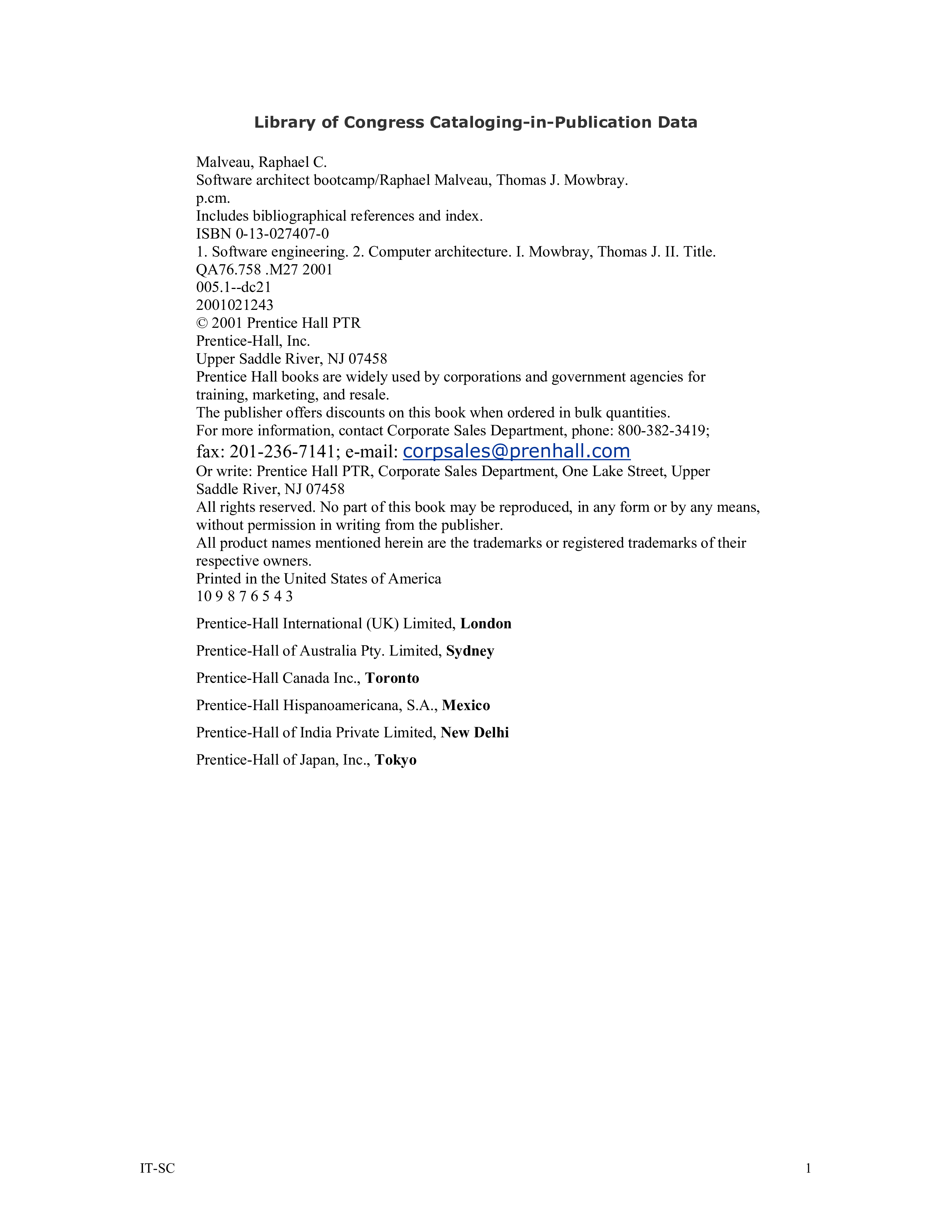 "Software architect bootcamp" - читать интересную книгу автора (Raphael Malveau, Raphael C. Malveau, Thomas Mowbray)
