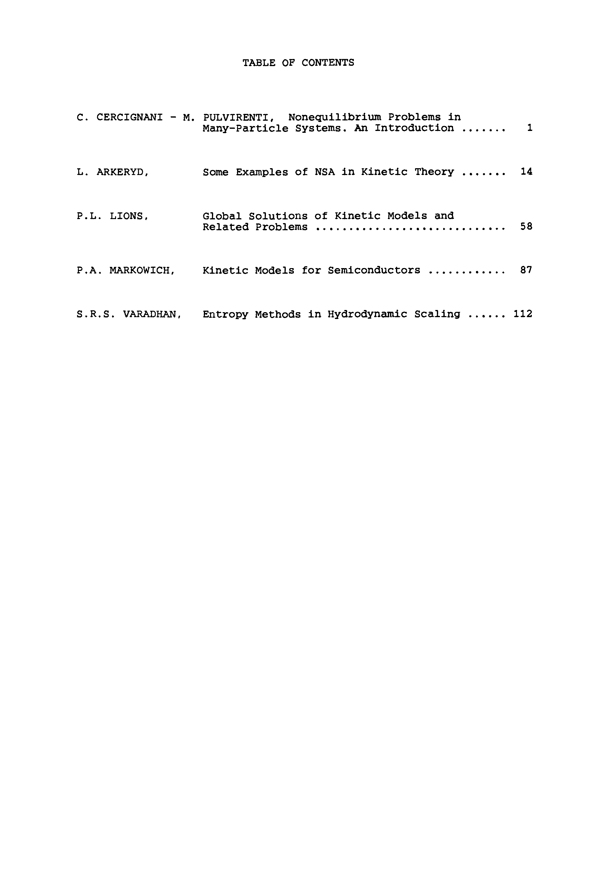 (Carlo Cercignani, Mario Pulvirenti, L. Arkeryd, P-L. Lions, P.A. Markowich,...)