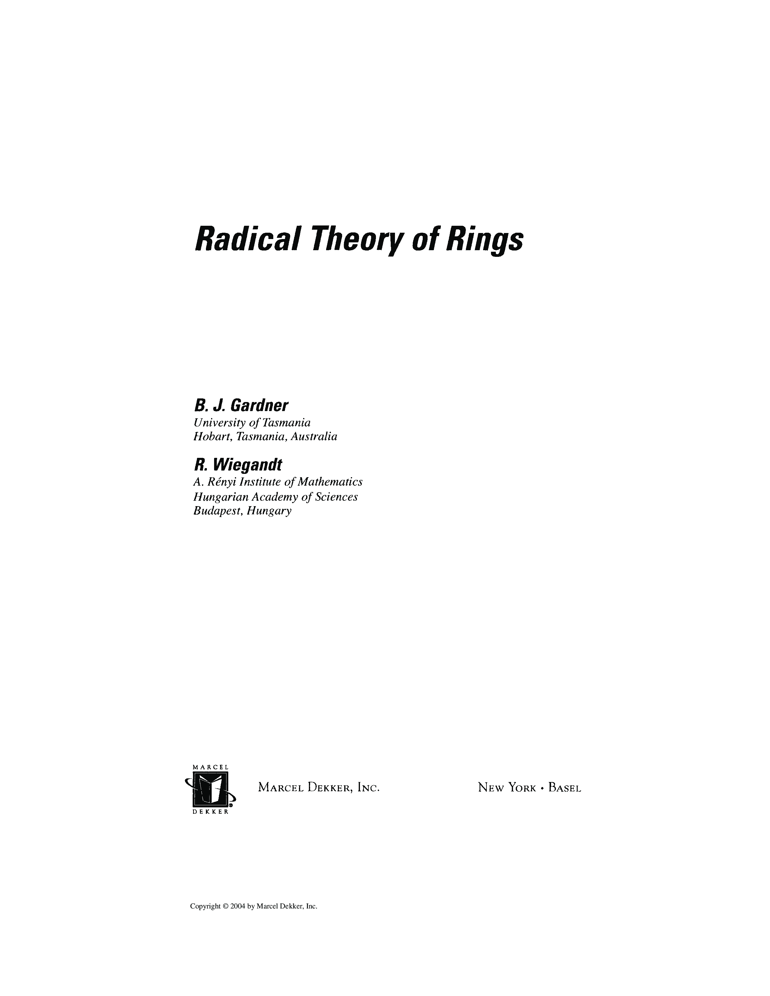 "Radical Theory of Rings" - читать интересную книгу автора