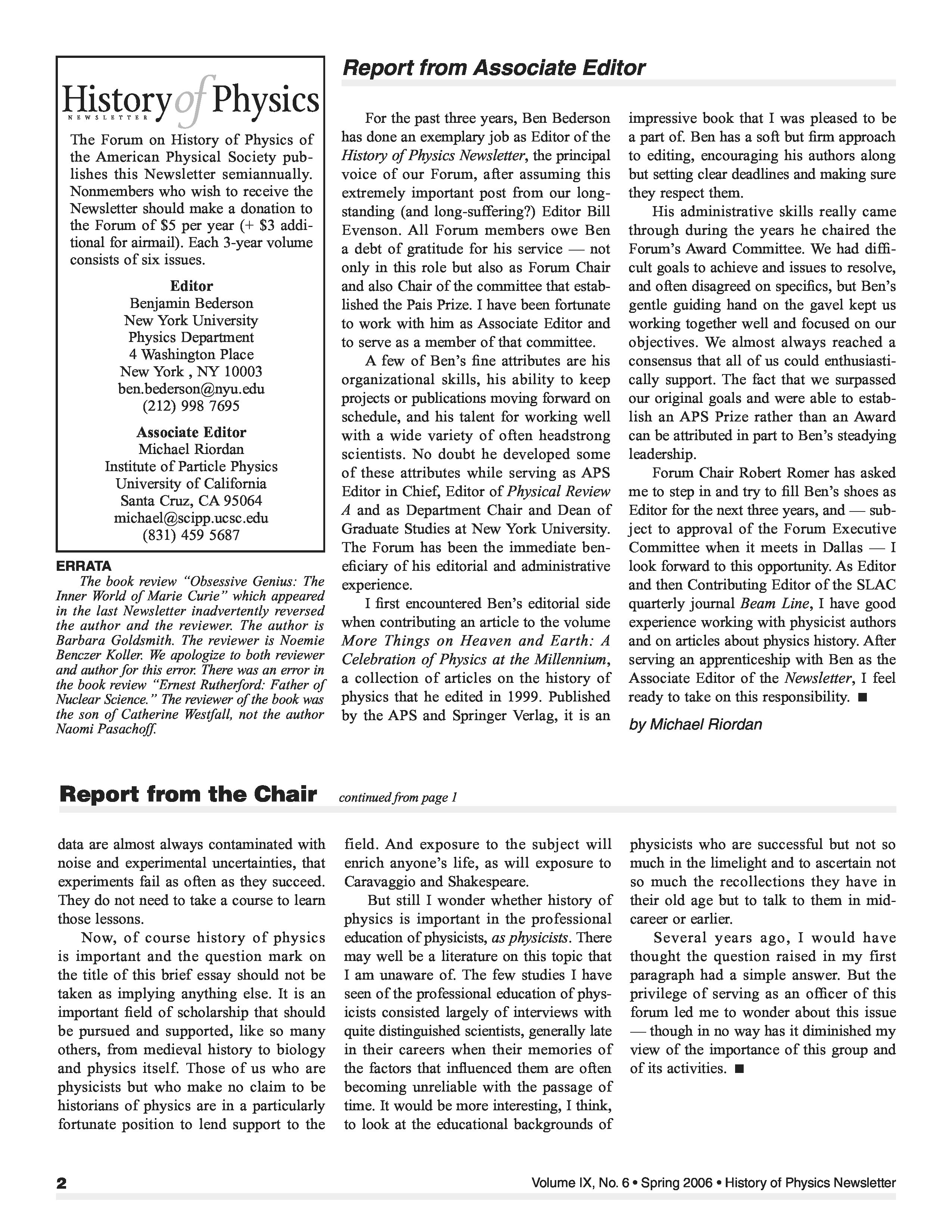 "History of Physics Newsletter" - читать интересную книгу автора