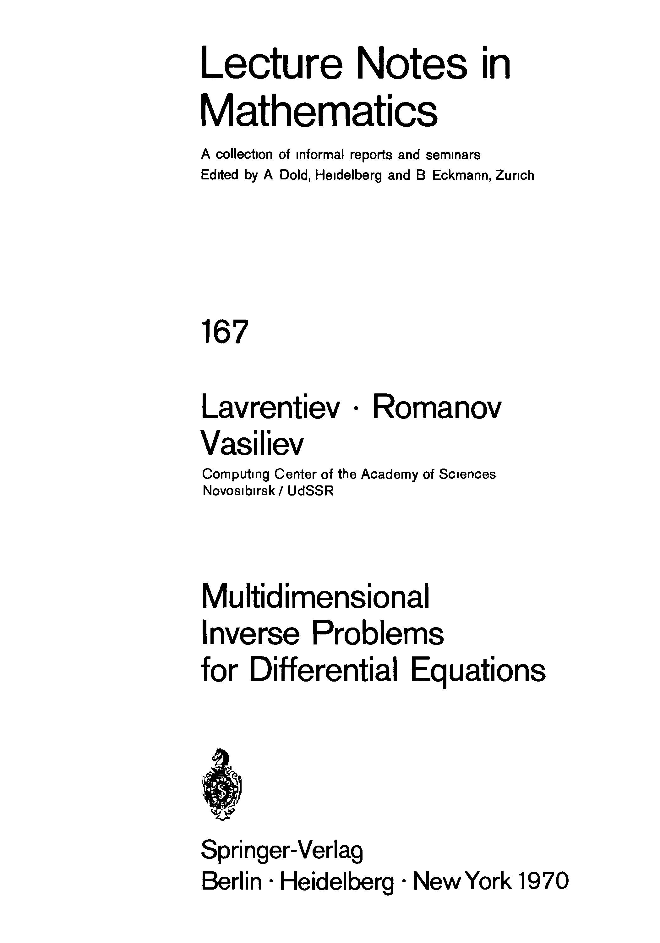 "Multidimensional Inverse Problems for Differential Equations" - читать интересную книгу автора