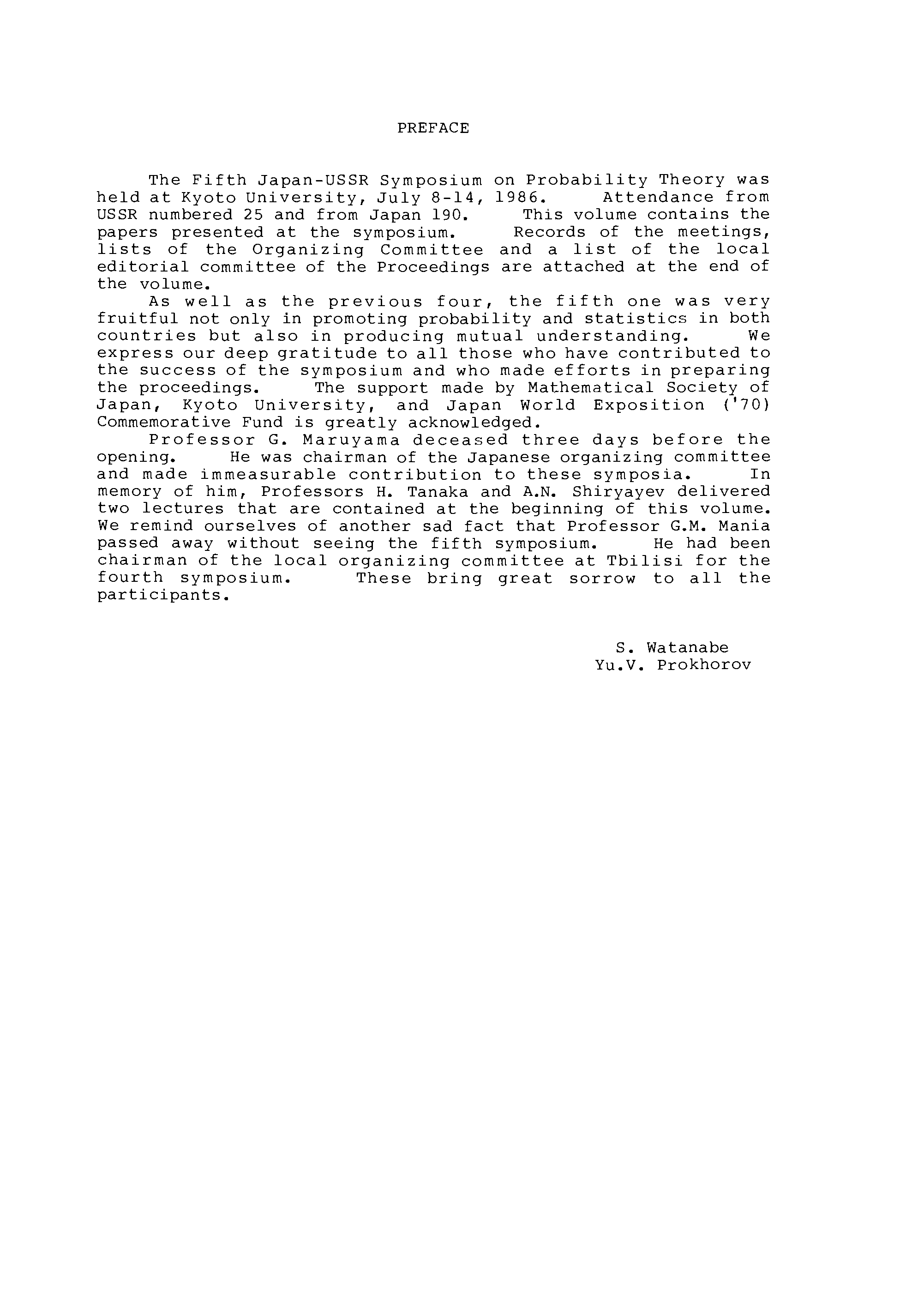 (Yu. V. Prokhorov, Shinzo Watanabe, Japan-USSR Symposium on Probability Theory...)