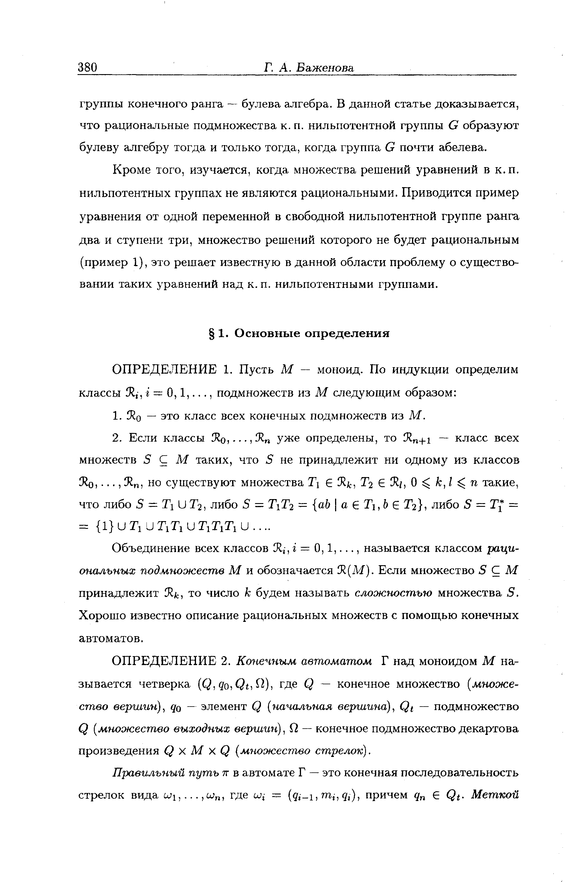 "О рациональных множествах в конечно-порожденных нильпотентных группах" - читать интересную книгу автора (Баженова Г.А.)