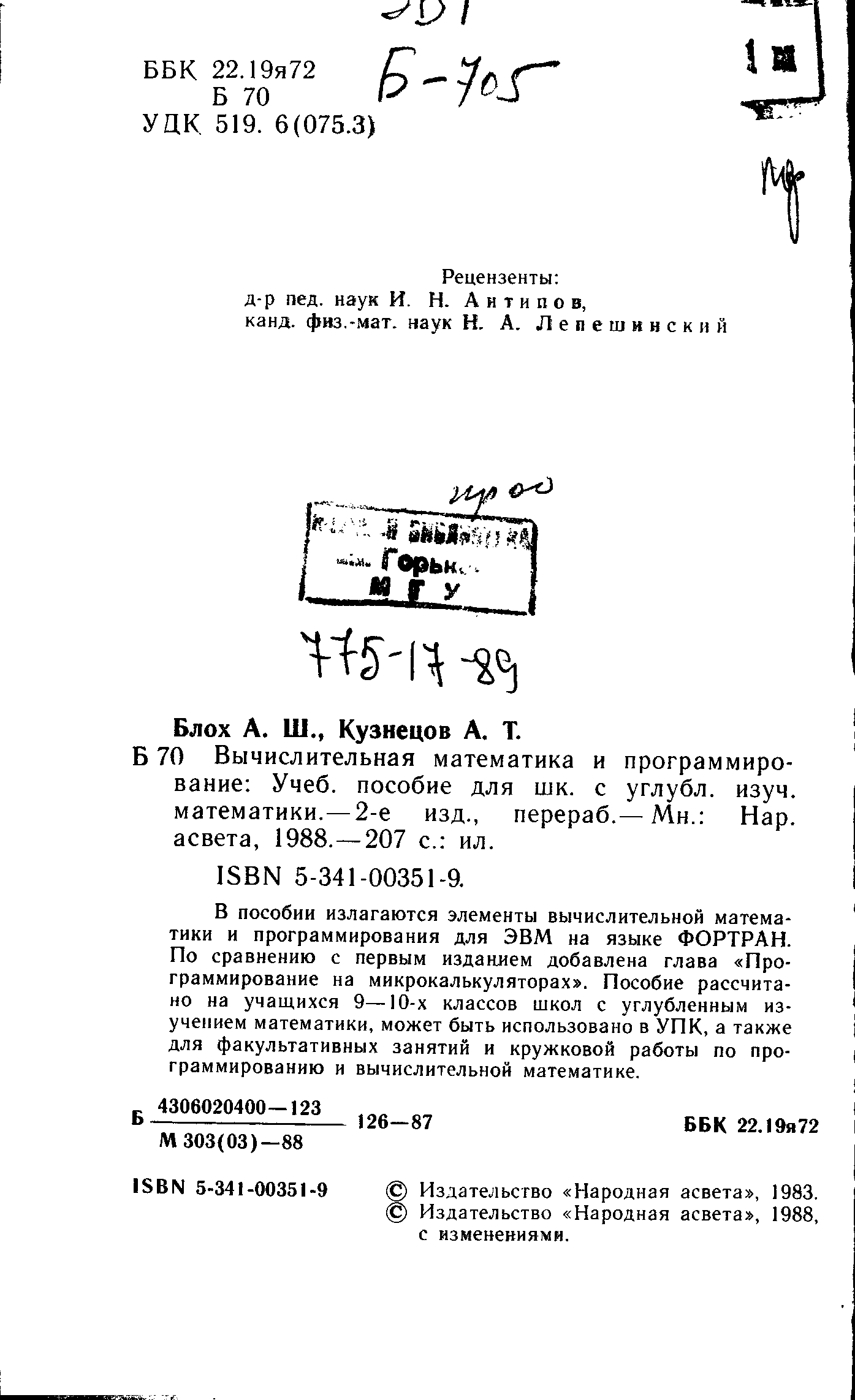(Блох А. Ш., Кузнецов А .Т.)