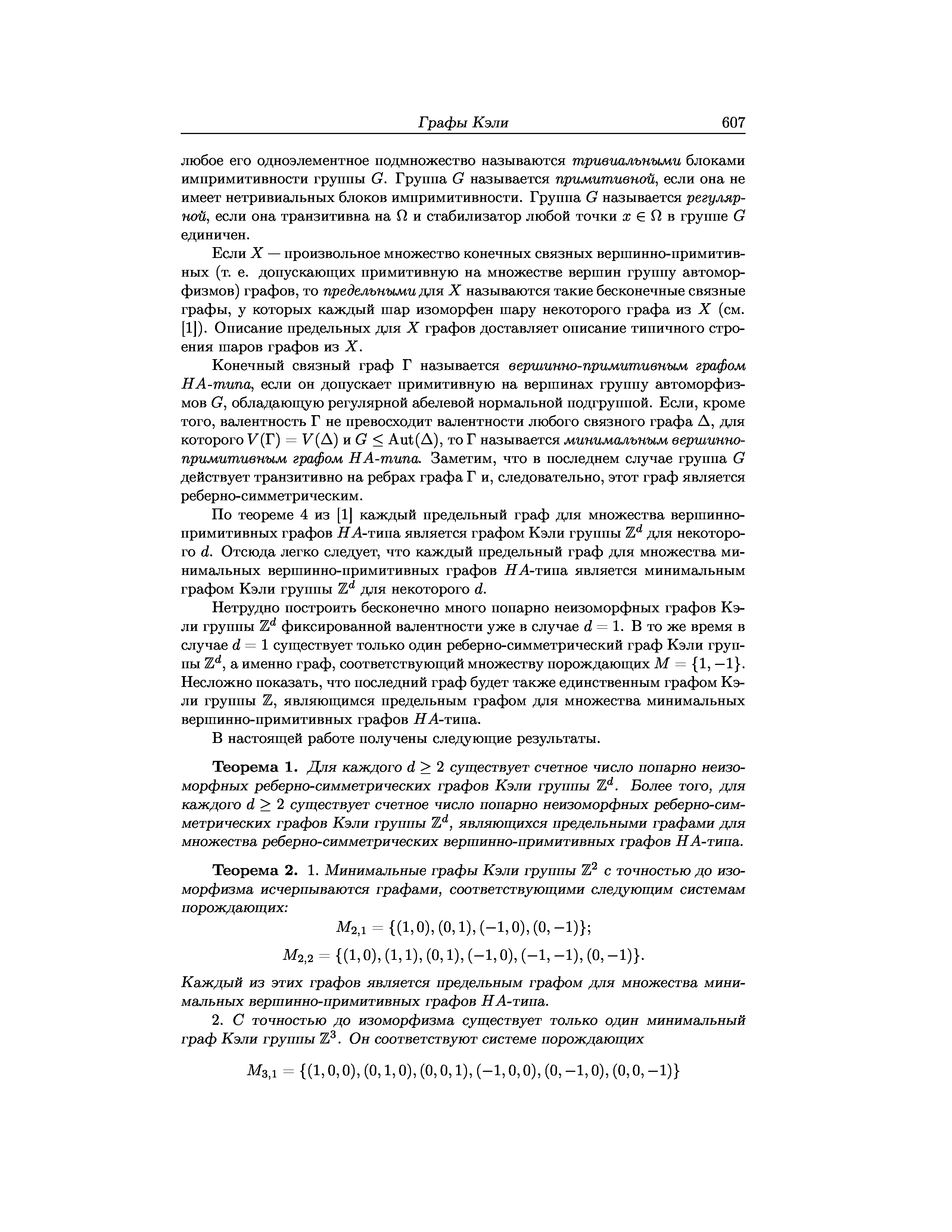 "Графы Кэли групп Z^d и пределы вершинно-примитивных графов HA-типа" - читать интересную книгу автора (Костоусов К. В.)