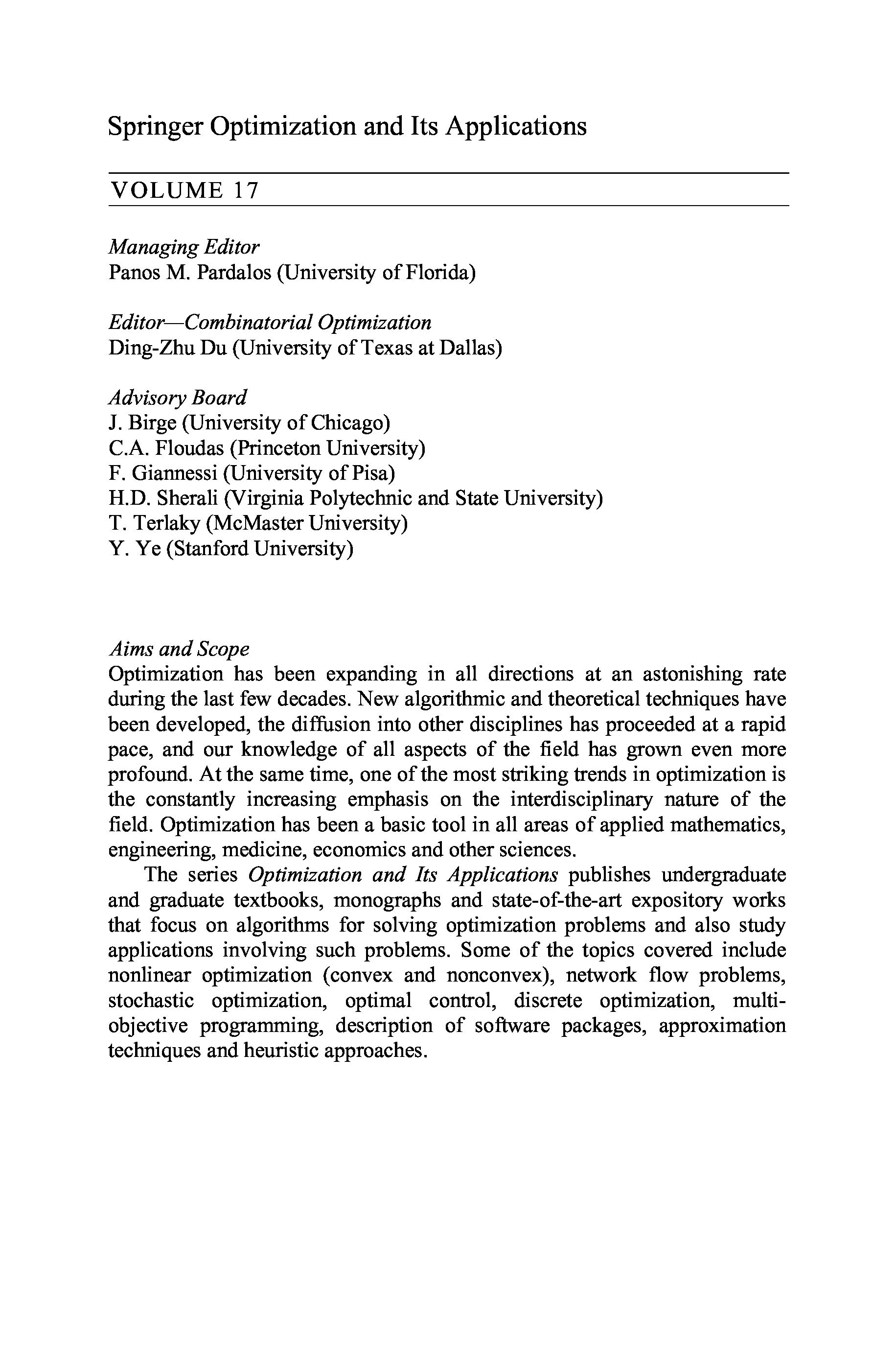 "Pareto optimality, game theory and equilibria" - читать интересную книгу автора (Panos M. Pardalos, A. Migdalas, Leonidas Pitsoulis)