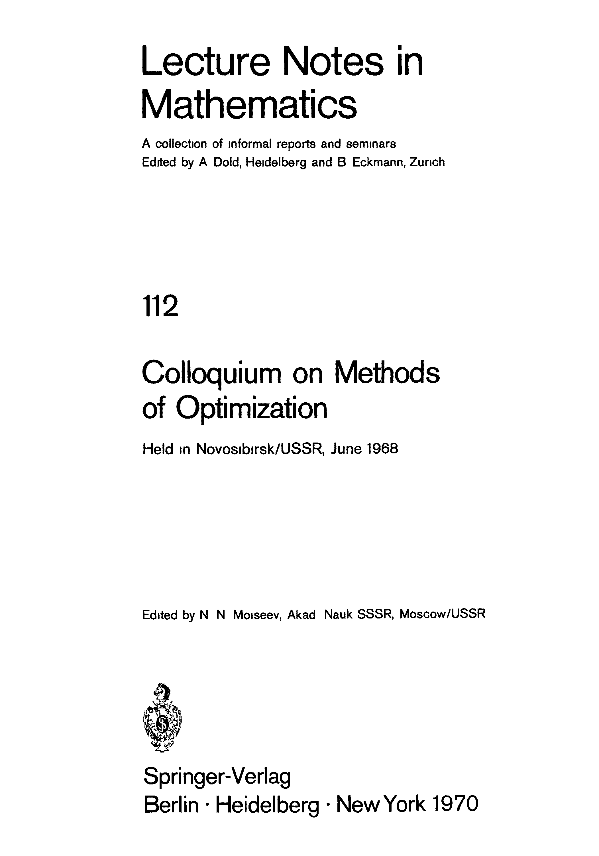 "Colloquium on Methods of Optimization" - читать интересную книгу автора