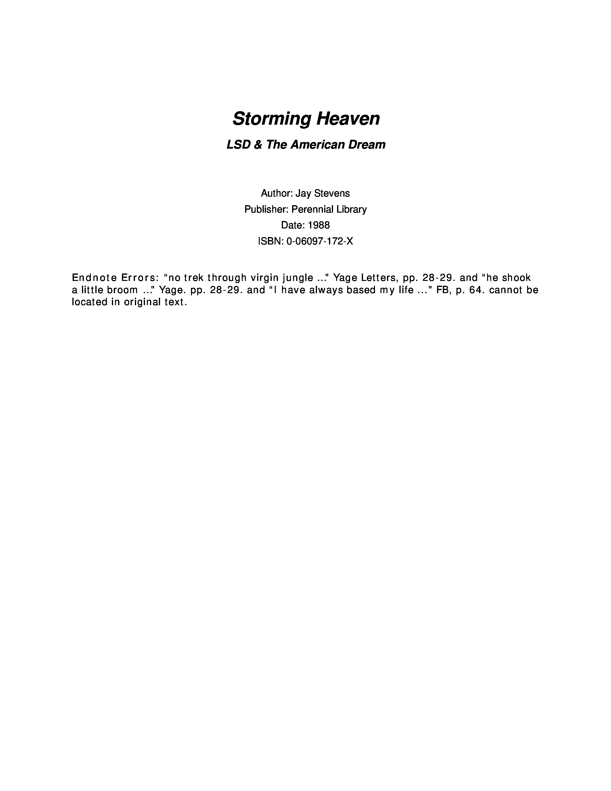 "Storming Heaven. LSD & The American Dream" - читать интересную книгу автора